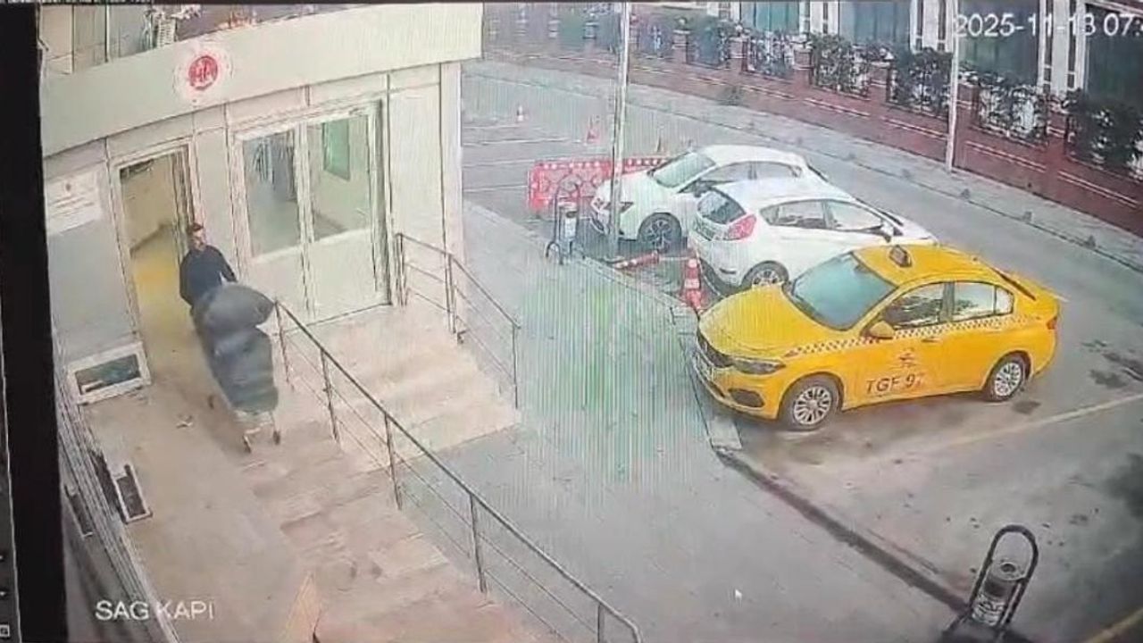 Erdal T., 25 kilo altın ile 50 kilo gümüşü siyah çöp poşetleri içinde, evrak taşımada kullanılan market arabasıyla adliyenin zemin katında, söz konusu gün saat 07.38’de görülüyor. Daha sonra çaldığı altın ve gümüşle saat 07.40’ta adliye kapısından dışarı çıktığı kameraya yansıyor.