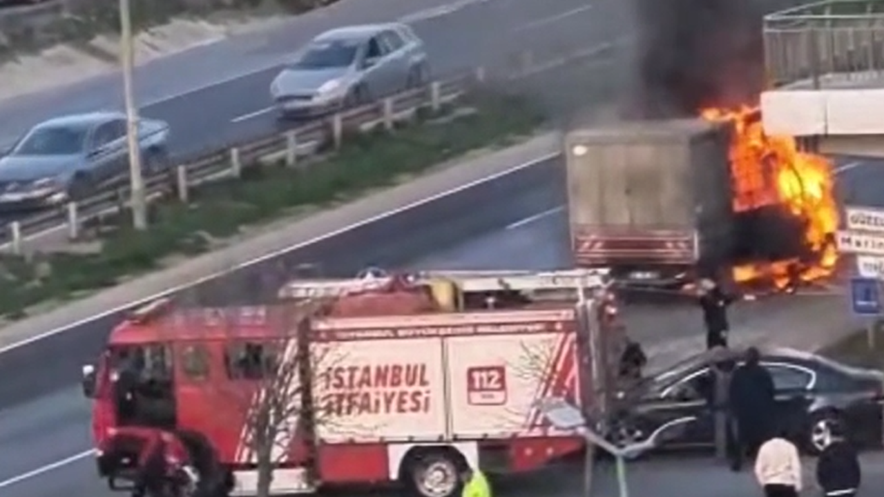 Büyükçekmece'de seyir halindeyken yanan kamyonet kullanılamaz hale geldi.