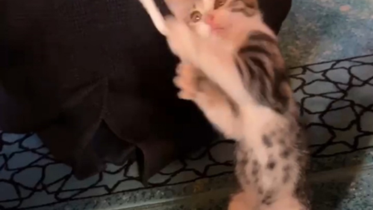 Zaman zaman cemaatin elindeki tesbihlerle oynayan yavru kedinin oyuncu halleri dikkat çekerken, camide kısa süreli tebessüm dolu anlar yaşandı. O anlar, camide bulunan bir vatandaş tarafından cep telefonu kamerasıyla kaydedildi.