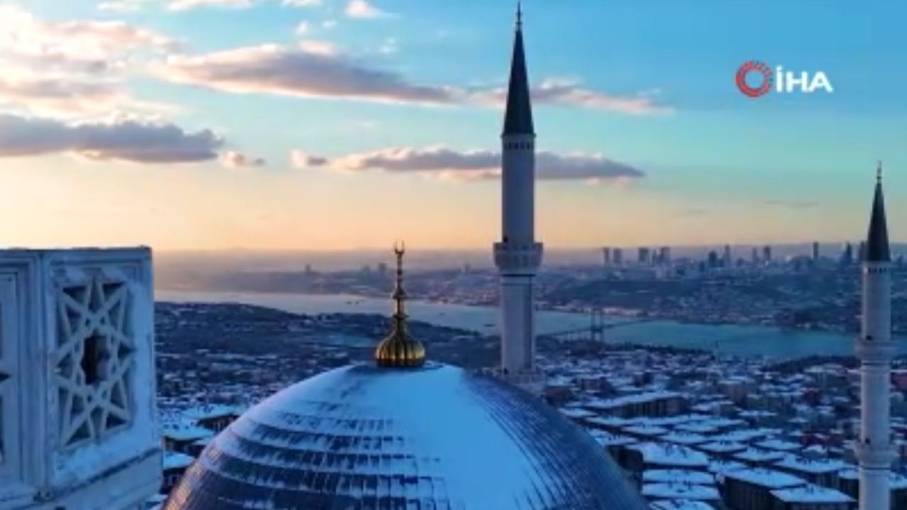 Beyaz örtüyle çevrelenen Çamlıca Kulesi modern mimarisiyle dikkat çekerken, Büyük Çamlıca Camii de ihtişamlı siluetiyle manzaraya ayrı bir güzellik kattı. Ortaya çıkan eşsiz görüntüler, İstanbul’un kış güzelliğini bir kez daha gözler önüne serdi.