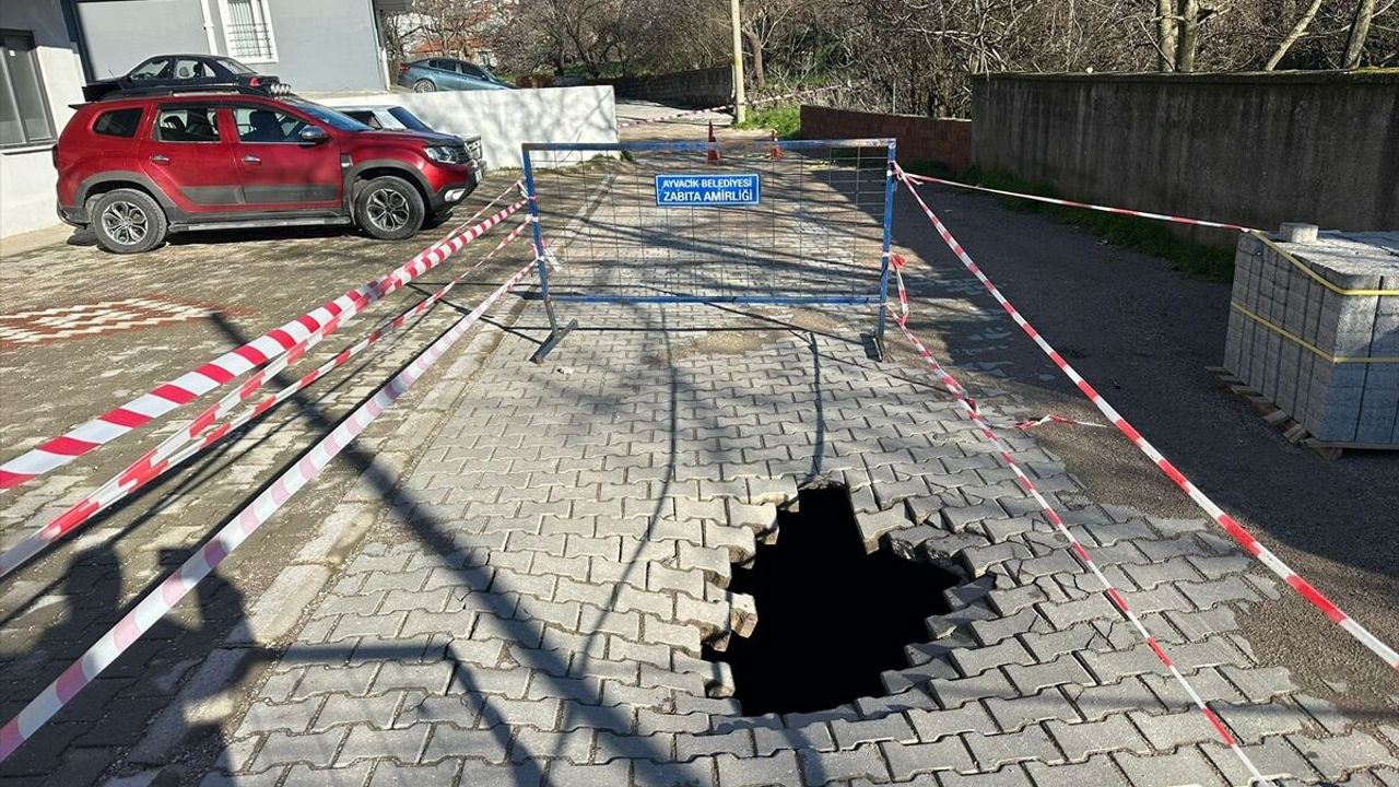 Altında su gider hattı bulunan yolda, 2 metre derinliğinde çukur oluştu. İhbar üzerine bölgeye gelen Ayvacık Belediyesi ekipleri, yolu trafiğe kapatıp bariyerlerle önlem aldı.