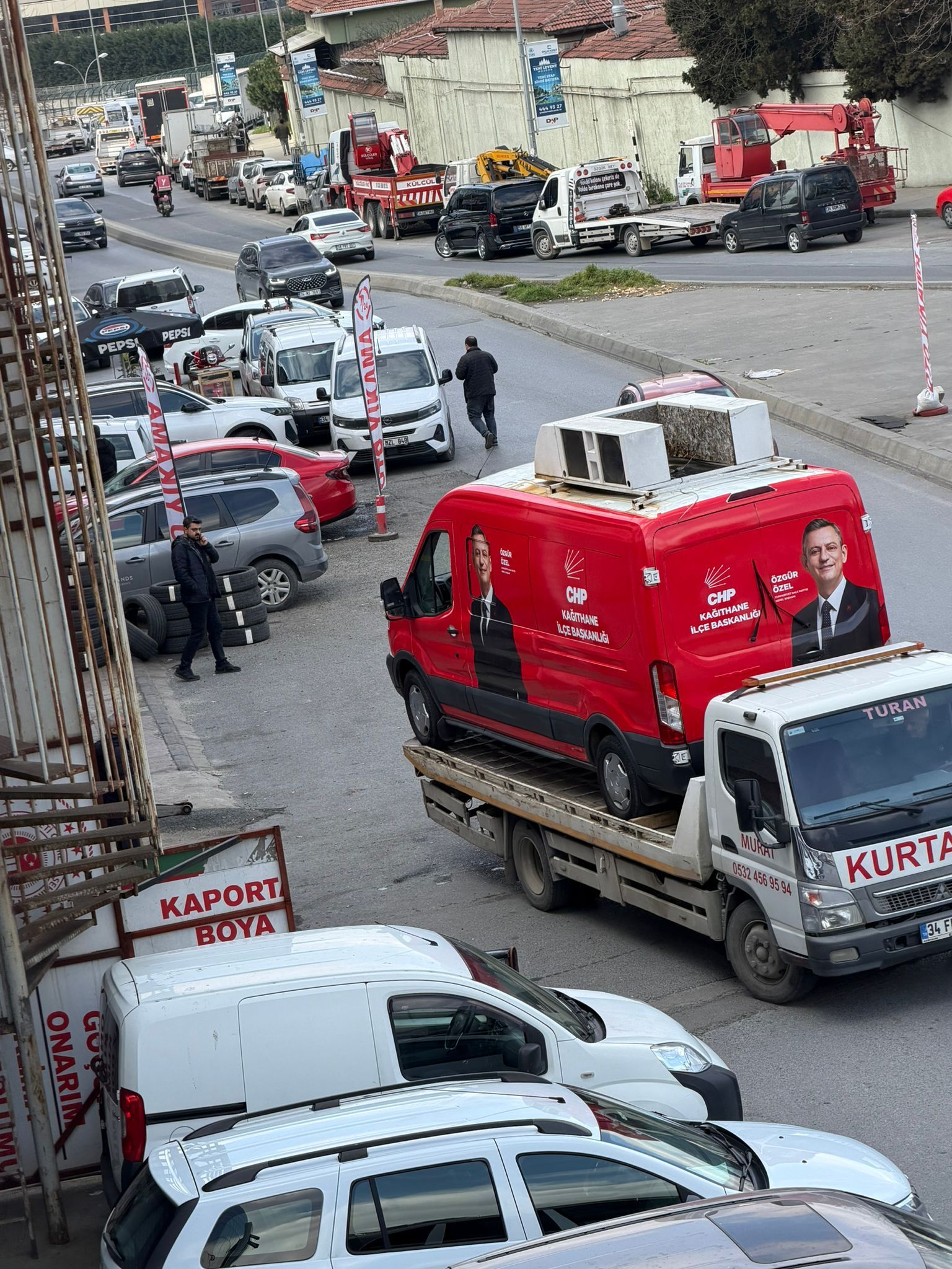 CHP’nin aracının çekici üzerinde görüntülenmesi, siyasi tartışmaların sembolik bir fotoğrafına dönüştü.