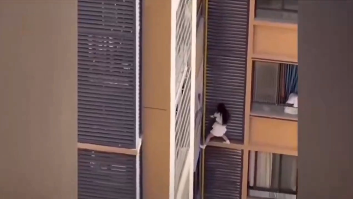 Çin’in Guangdong eyaletinde bir kadın, sevgilisinin eşi tarafından yakalanmaktan kurtulmak isterken yüksek bir binanın dış cephesine tutunarak ölümle burun buruna geldi.