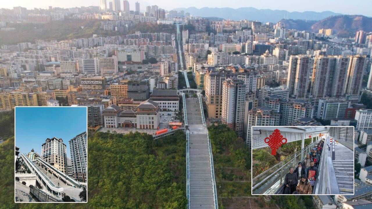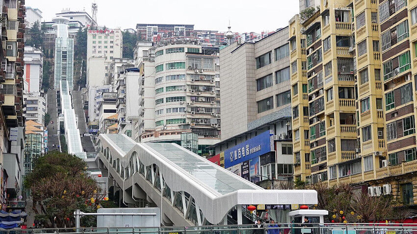 Wushan bölgesindeki uçurumun kenarından kente doğru yükselen bu devasa yapı, sadece tek bir banttan oluşmuyor. İki düzineden fazla yürüyen merdiven ve asansörün birleşiminden meydana gelen sofistike sistem, bölge ulaşımını adeta dikey bir otobana dönüştürdü.