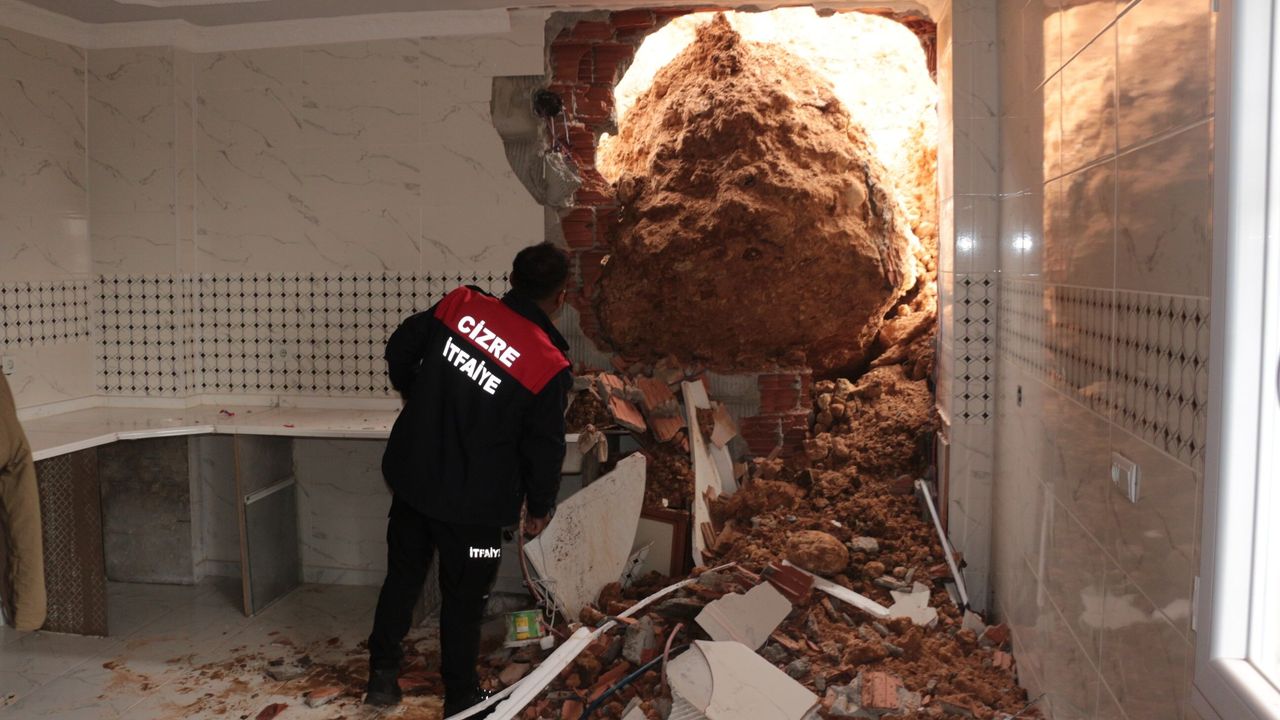 Olay, Cizre ilçesi Cumhuriyet Mahallesi 1394. Sokak'ta meydana geldi. Bölgede süregelen şiddetli yağışların ardından yamaçta toprak kayması yaşandı. Büyük bir gürültüyle yerinden kopan dev kayalar, yamacın eteğinde bulunan evin üzerine yuvarlandı. Kayaların isabet ettiği evin duvarları kağıt gibi parçalanırken, yapıda büyük çapta maddi hasar meydana geldi.