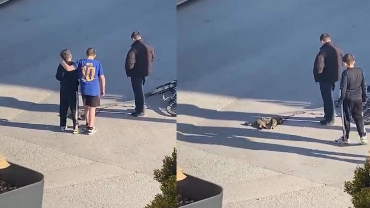 Çarpmanın etkisiyle savrularak yaralanan kediyi fark eden çevredeki çocuklar yardımına koştu. Yaralı kedinin acı çektiğini gören çocuklar, hayvanın üzerini örttü.
