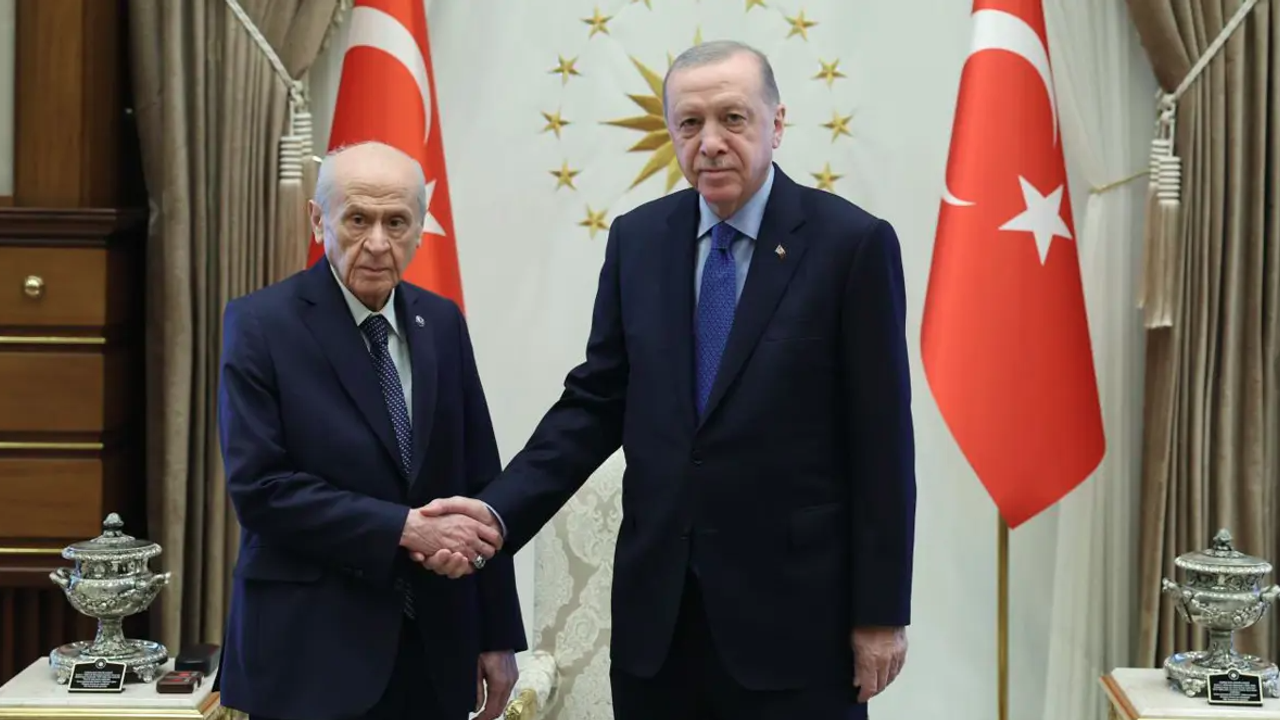Cumhurbaşkanı Recep Tayyip Erdoğan, MHP lideri Devlet Bahçeli ile görüşüyor.