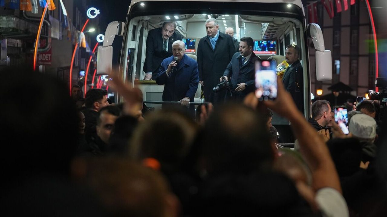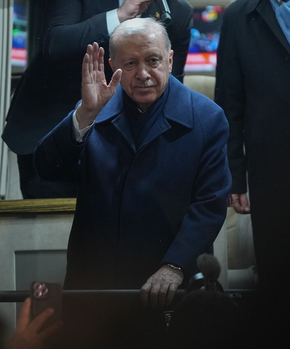 Merkez Camisi önünde kendisini bekleyen hemşehrilerini eşi Emine Erdoğan ile selamlayan Cumhurbaşkanı Erdoğan, makam aracından inerek, otobüse geçti.