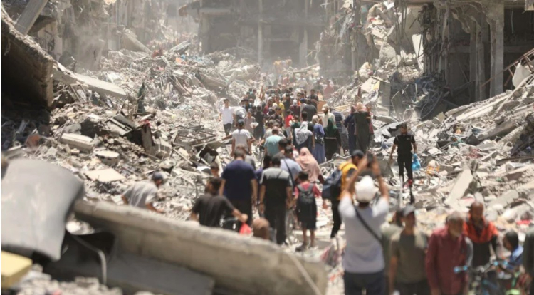 Konuşmasında, Dawoud Abo Alkas tarafından 31 Mayıs 2024''te çekilen "İsrail askerleri, Gazze''nin kuzeyindeki Cibaliya''da ağır yıkım bırakarak çekildi" başlıklı fotoğrafa da yer veren Erdoğan, Gazze''deki yıkımı gözler önüne seren fotoğrafla ilgili şunları söyledi: