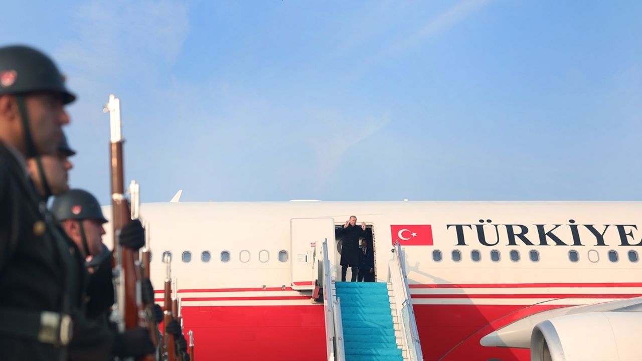 Cumhurbaşkanı Recep Tayyip Erdoğan, Azerbaycan'ın Zafer Günü Töreni'ne katılmak üzere Azerbaycan'a gitti. Cumhurbaşkanı Erdoğan, kendisini uğurlamaya gelenleri selamlayarak uçağına bindi.
