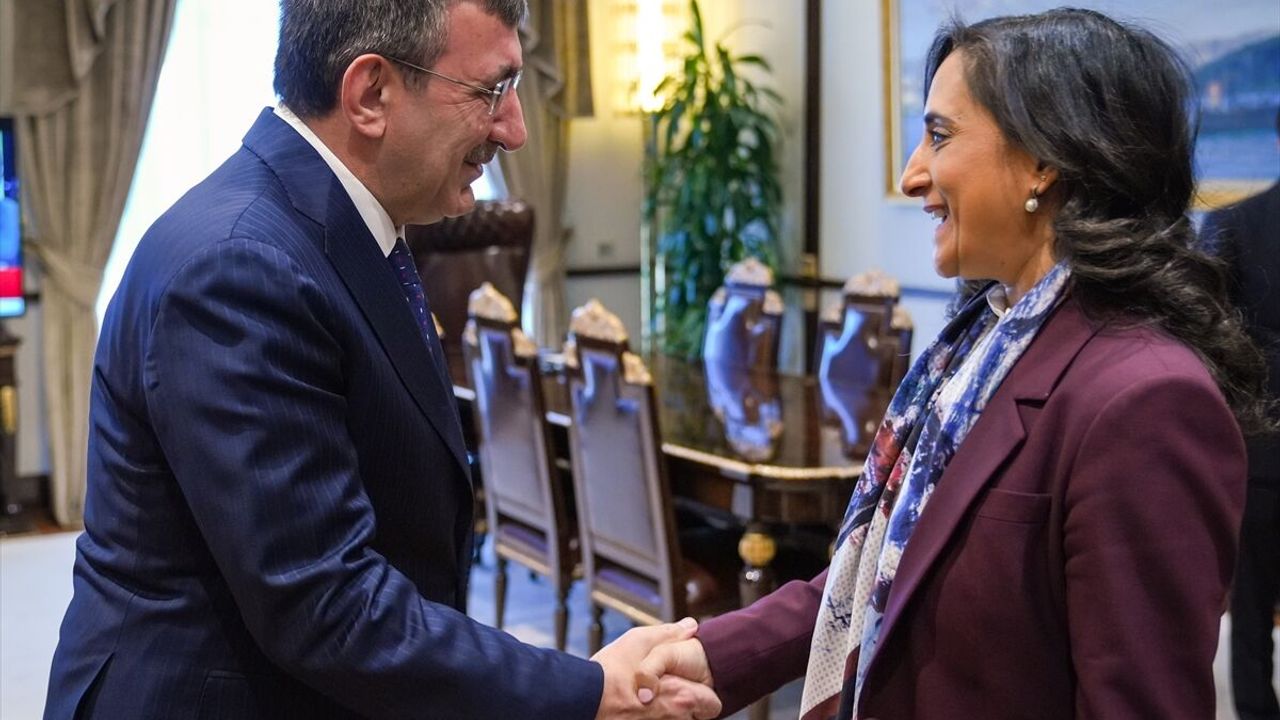 Cumhurbaşkanı Yardımcısı Cevdet Yılmaz, Kanada Dışişleri Bakanı Anita Anand'ı Cumhurbaşkanlığı Külliyesi'nde kabul etti. Görüşmede, Dışişleri Bakan Yardımcısı Büyükelçi Levent Gümrükçü de yer aldı.