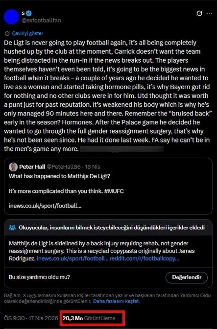 Sosyal medya platformunda paylaşıma eklenen topluluk notunda ise iddiaların gerçeği yansıtmadığı belirtildi. Notta, Matthijs de Ligt’in sahalardan uzak kalma nedeninin cinsiyet değişimi değil, rehabilitasyon süreci gerektiren bir sırt sakatlığı olduğu ifade edildi.