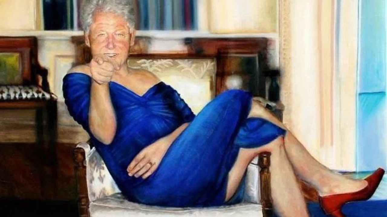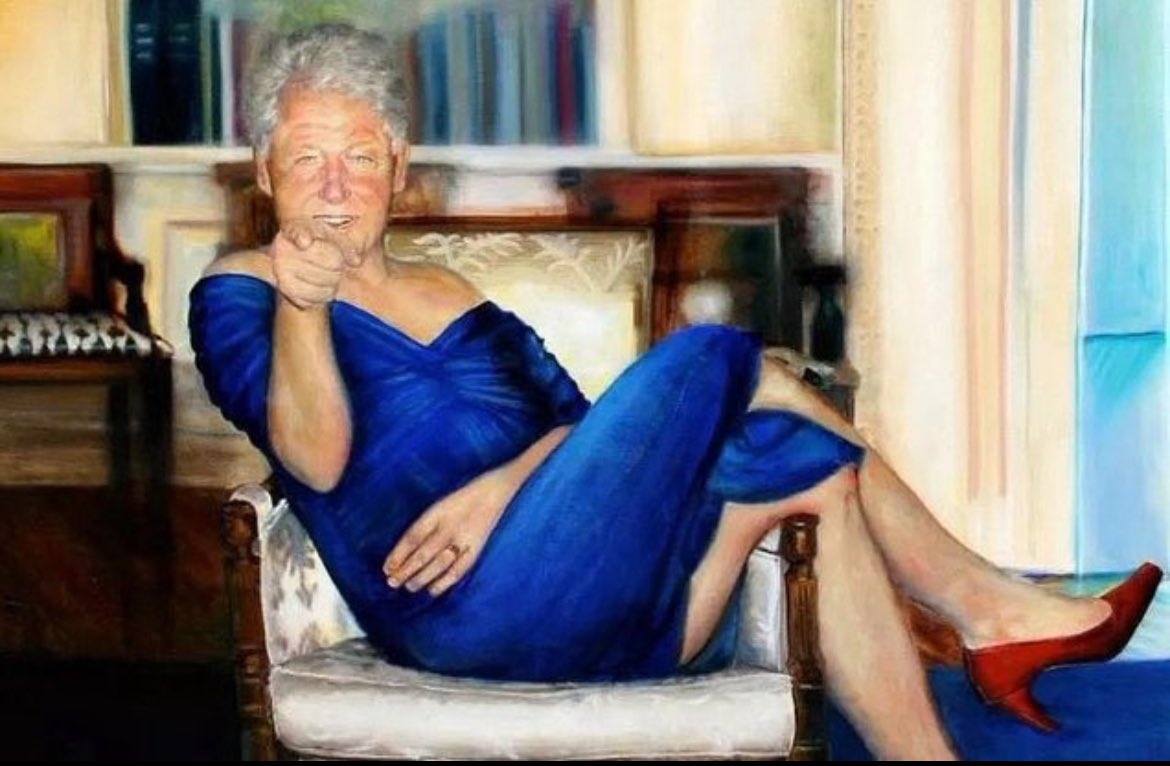 Epstein’ın New York’taki evinde Clinton’ı mavi bir elbiseyle gösteren tablo, Monica Lewinsky’ye gönderme yapıyor.