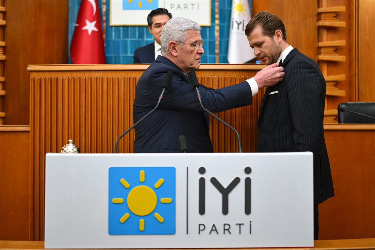 İYİ Parti Genel Başkanı Müsavat Dervişoğlu, partisinin TBMM Grup Toplantısı'nda, partisinin Gençlik Kolları Genel Başkanı Osman Ertürk Özel'e rozet taktı.