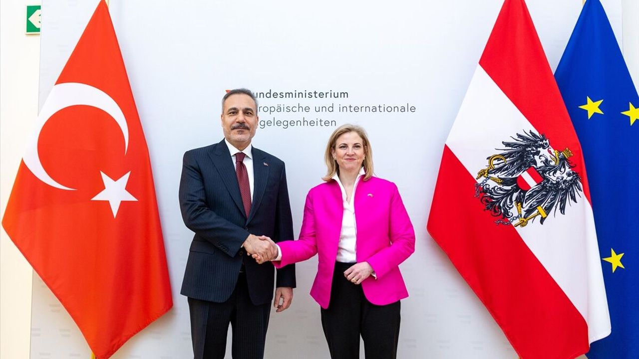 Dışişleri Bakanı Hakan Fidan, çeşitli temaslarda bulunmak üzere ziyaret ettiği Avusturya'da, Avusturya Federal Avrupa ve Uluslararası İşler Bakanı Beate Meinl-Reisinger ile bir araya geldi.