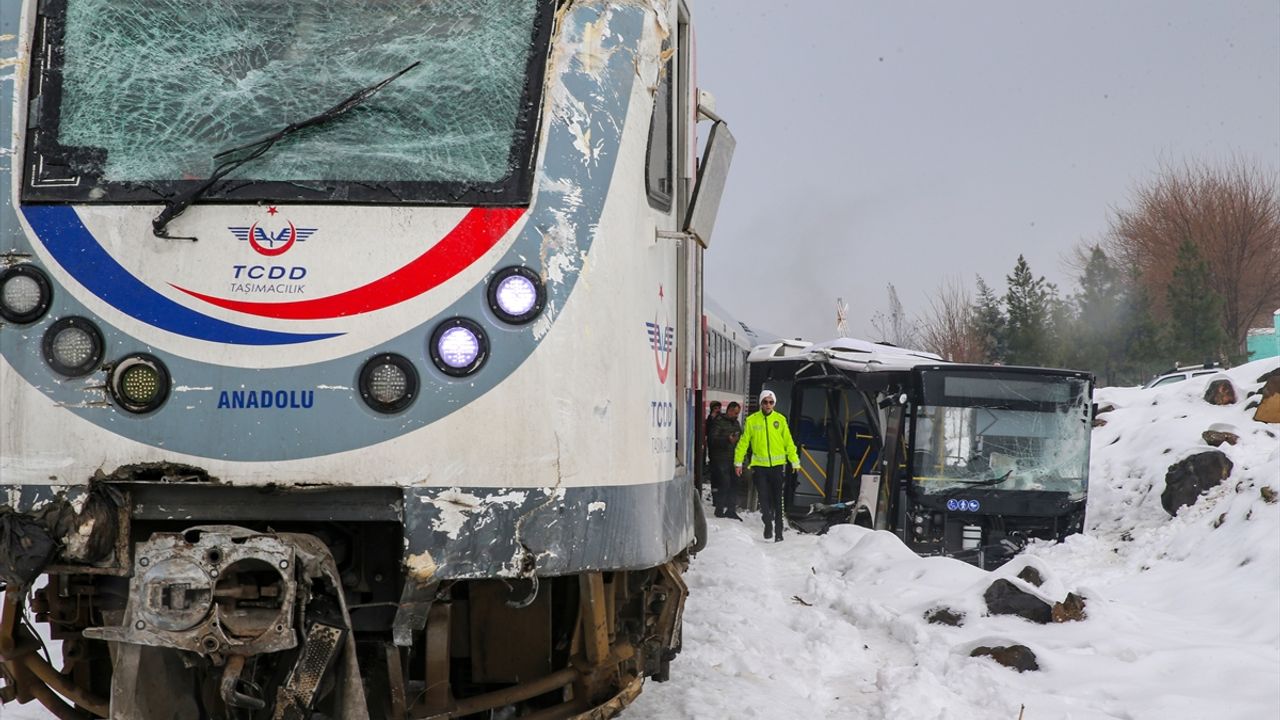 Kaza nedeniyle trende ve belediye otobüsünde maddi hasar meydana geldi.
