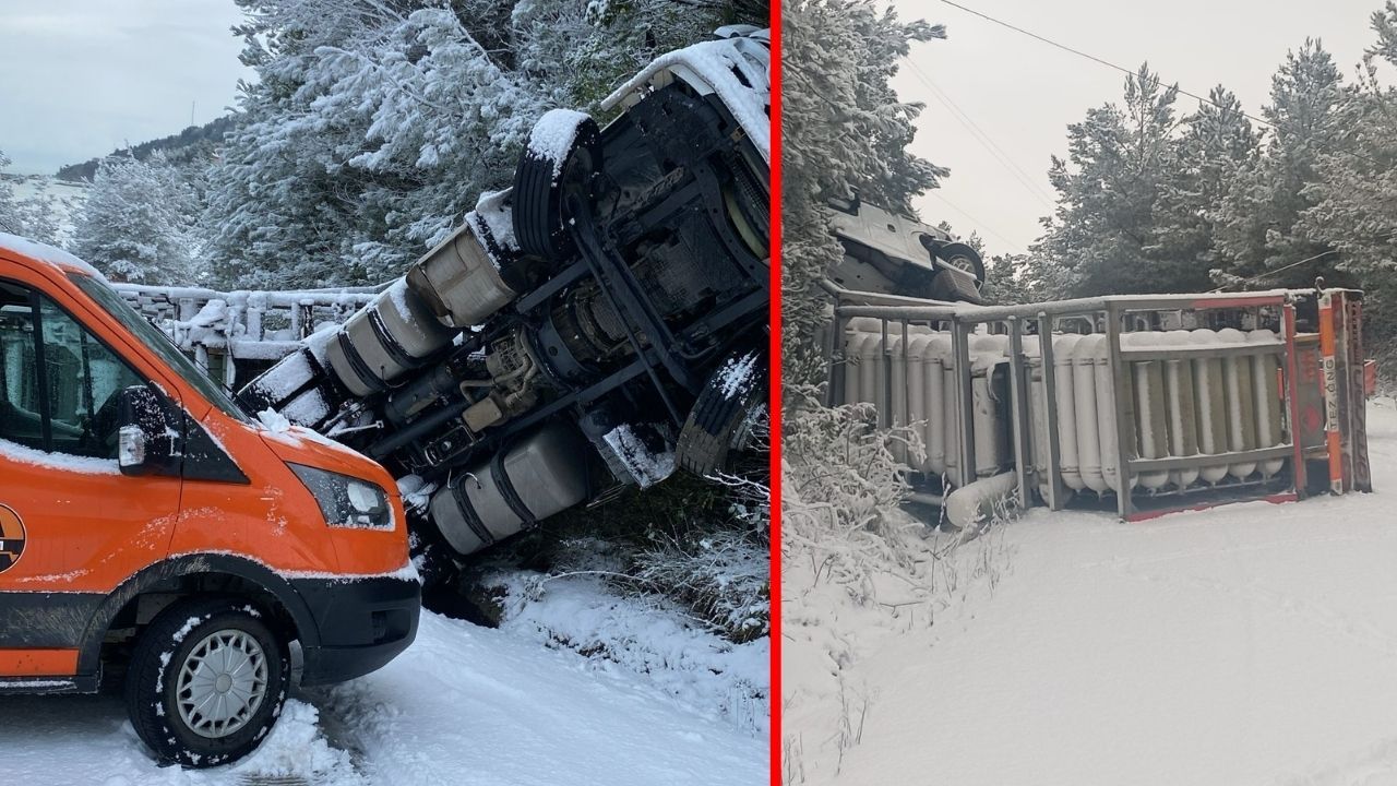 Kaza, İnebolu-Abana karayolu Darsu mevkisinde meydana geldi. Edinilen bilgiye göre, buzlanma sebebiyle sürücüsünün kontrolünden çıkan KARGAZ firmasına ait doğalgaz tüpleri yüklü tır devrildi.
