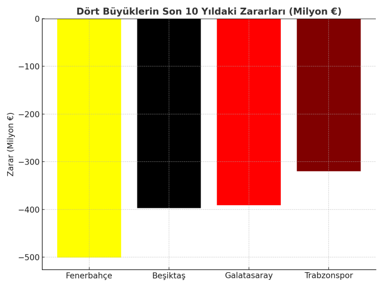 Dört büyükler 10 yılda milyarlarca Euro zarar etti. AA’nın KAP ve bağımsız denetim raporlarından derlediği verilere göre dört büyükler, son 10 sezonda kazandıklarından yüzde 32 daha fazla harcama yaptı.