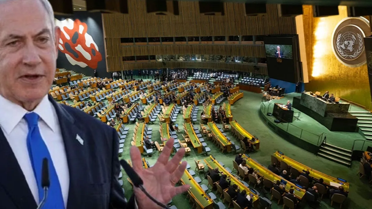 Gazze Şeridi''nde 7 Ekim 2023''ten bu yana düzenledikleri saldırılar ve insani yardım girişine yönelik engellemeler nedeniyle insanlık felaketinin yaşanmasına neden olan İsrail''in Başbakanı Netanyahu, BM Genel Kurulu''nda tepkiyle karşılaştı.