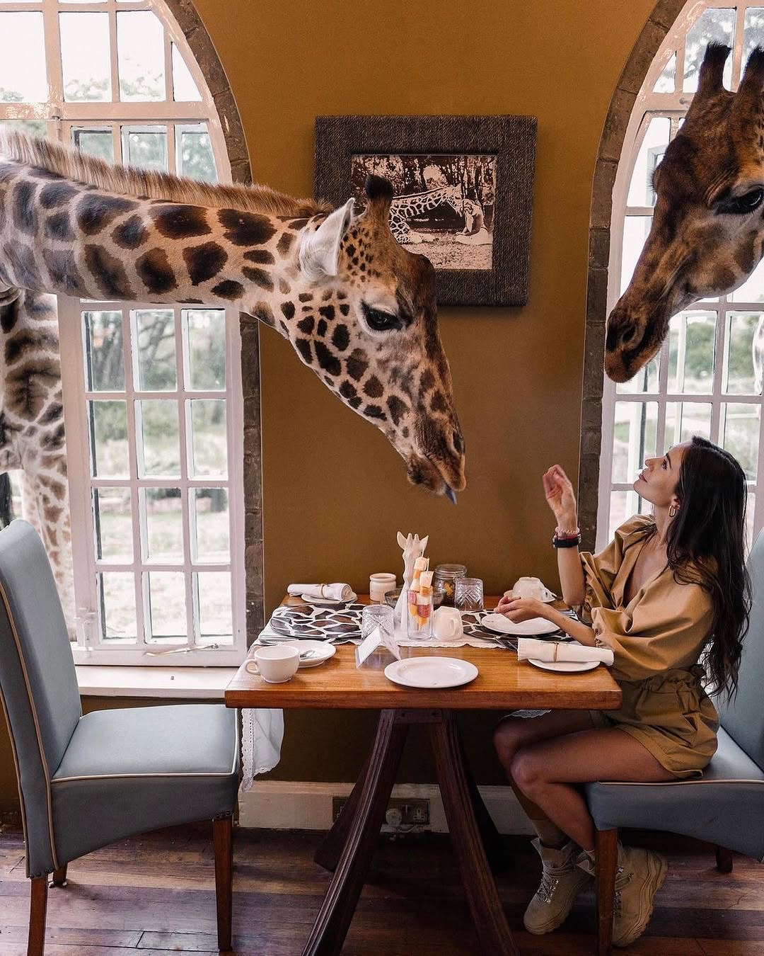 Kenya’nın başkenti Nairobi’de zürafalarla beraber uyanmak istemez misiniz? Ya da yemek sırasında onların da masanıza dâhil olması hakkında ne düşünürsünüz? Heyecan verici değil mi? Giraffe Manor’da bunları yaşamak mümkün! Yemyeşil Nairobi doğasında, 1930’lardan kalma bir konakta kalırken her sabah zürafaların sevimli yüzleriyle karşılaşabilirsiniz. Rothschild zürafalarının özgürce gezindiği bu yerde doğa ile tam anlamıyla iç içe bir deneyim yaşayacaksınız. Tabii şunu da belirtmek gerek; zürafalarla unutulmaz bir anı yaşamak istiyorsanız otelde konaklamak şart.