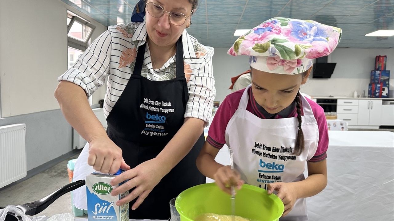 İlçe Milli Eğitim Müdürlüğünce "Aile Yılı" etkinlikleri kapsamında Gölyaka’daki Şehit Ercan Eker İlkokulu'nda düzenlenen yarışmada, öğrenciler ve anneleri evden getirdikleri malzemeleri okulun yemekhanesinde pişirdi.