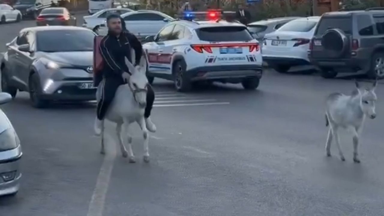 Motosikletine veda eden azimli kurye, popüler bir yemek sipariş platformuna ait dev kırmızı termal çantasını sırtına takarak mesaisine eşek üzerinde devam etti. Sosyal medyada kısa sürede viral olan görüntülerde, eşek sırtındaki kuryenin ana cadde üzerinde oldukça rahat ve soğukkanlı tavırlarla ilerlediği anlar kameraya yansıdı. Lüks otomobillerin ve bölgedeki jandarma ekiplerinin arasından süzülen kuryenin trafik kurallarına harfiyen uyması ise dikkatlerden kaçmadı.