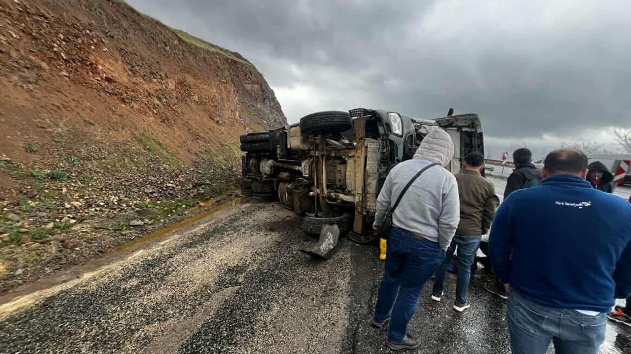 Kaza, Elazığ-Diyarbakır karayolunun Sivrice ilçesi mevkisinde meydana geldi. Edinilen bilgilere göre, 23 AEU 544 plakalı beton pompası, yağmurun etkisiyle kayganlaşan yolda sürücüsünün direksiyon hakimiyetini kaybetmesi sonucu devrildi. Tonlarca ağırlığındaki dev aracın yolda yan yattığını gören diğer sürücüler ve çevredeki vatandaşlar durumu hemen yetkililere bildirdi.