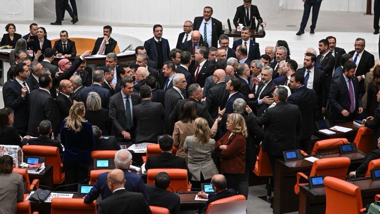 AK Parti'li milletvekillerinin, CHP'li milletvekillerinin elinden karton tabutu almak istemesi üzerine Genel Kurulda arbede yaşandı. Meclis Başkanvekili Adan, birleşime ara verdi.