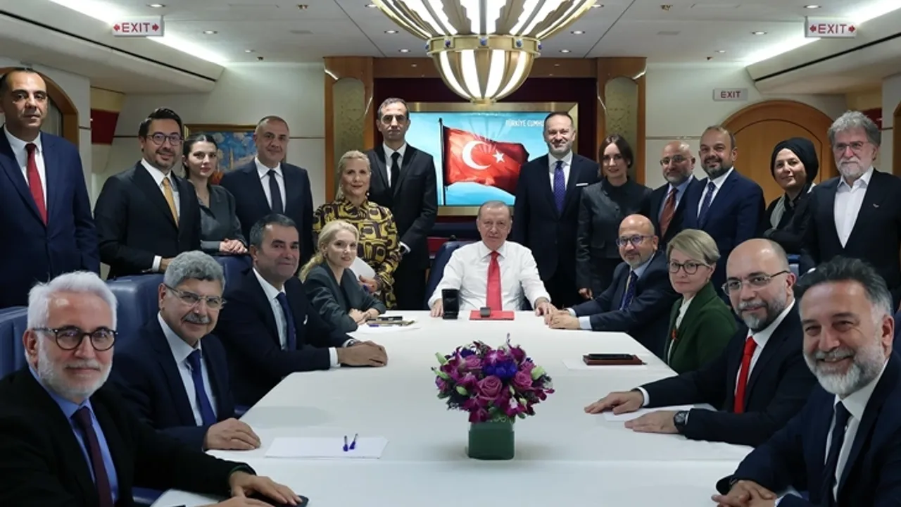 Cumhurbaşkanı Erdoğan: Ben özellikle sizlere teşekkür ediyorum. Beyaz Saray''da Sayın Trump ve heyeti tarafından gayet iyi ağırlandık. Washington''dan memnun ayrılıyoruz. Atılan çamurlarla kirletilemeyecek kadar güzel bir ziyaretti. Sayın Başkan’la samimi, yapıcı ve verimli bir atmosferde görüşmelerimizi gerçekleştirdik. Zaten Sayın Trump ile ilişkimiz, malum geçmişten bu yana çok iyi. İlk döneminde farklı bir diyaloğumuz vardı, o devam ediyor. Bu durum inanıyorum ki; Türk-Amerikan ilişkilerine de olumlu yansıyacak. Bugüne kadar, dostlarımızla konuşurken açık, net ve ilkeli bir dil kullandık ve kullanıyoruz. Sayın Trump da açık konuşmayı seven, düşüncelerini perdesiz dillendiren bir siyasetçi. Amerika ile ilişkilerimizi, karşılıklı saygı temelinde ilerletiyoruz. Tek görüşmeyle her meseleyi halletmek, tabii ki mümkün değil. Fakat bu temas, birçok konuda anlamlı ilerleme sağlamamıza yol açtı. İki ülkenin ticaret hacmi de potansiyeli de ortada. 100 milyar dolarlık ikili ticaret hedefimiz var. Liderler olarak bunu harekete geçirecek politik iradeye sahibiz. Görüşmemizde ticaret ve yatırımların yanı sıra Gazze''deki insani felaketi ve Suriye konusunu da ele aldık. Sayın Trump''ın küresel barış vizyonunu ben de destekliyorum. Akan kanın durması noktasında iki tarafta da bir mutabakat söz konusu. İnşallah bu konuda da kısa sürede bir açılım sağlarız. Yemekte de bütün bu konuları her yönüyle ele alma fırsatını bulduk. Gerek şahsım, gerek bakan arkadaşlarımla birlikte bunları değerlendirdik.