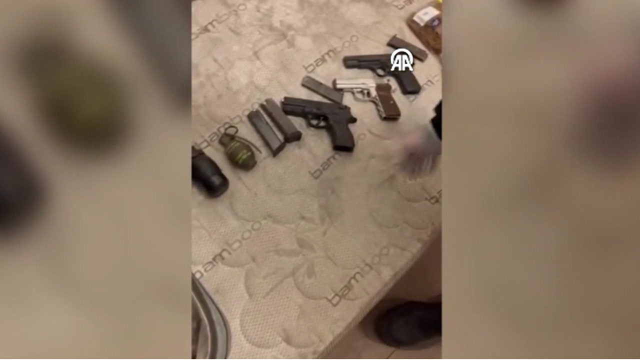 Evde yapılan aramada, 4 ruhsatsız tabanca, 2,5 kilogram eroin, 1 el bombası, 1 gaz bombası ile çok sayıda hassas terazi ele geçirildi.