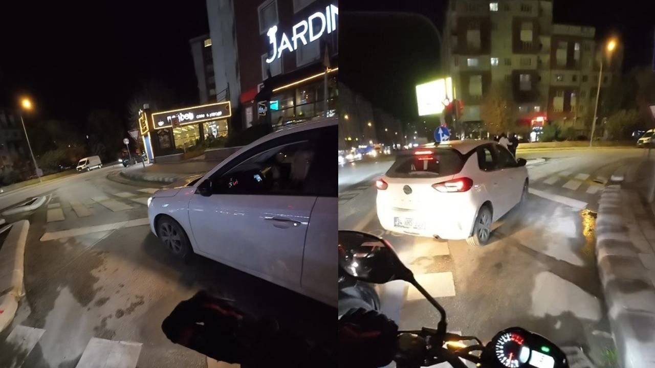 Fakat daha sonra normalde cadde üzerindeki araçlar için olan kırmızı ışığı üzerine alınan kadın sürücünün trafikte beklediği anlaşıldı. Motosiklet kullanıcısı Berat Akbaş, kadın sürücüyü uyardıktan sonra trafik açıldı. Yaşanan ilginç anlar kask kamerasına yansıdı.