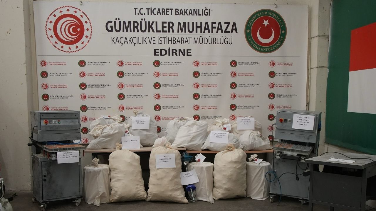 Savcılık talimatıyla operasyonun genişletilmesi sonucu, uyuşturucu maddeleri Edirne'de teslim almaya gelen şüpheli gözaltına alındı. Alıcının ikametinde yapılan aramalarda evin uyuşturucu imalathanesi olarak kullanıldığı tespit edildi. Evde yapılan aramalarda toplam 117 kilo 434 gram MDMB cinsi uyuşturucu madde, satışa hazır 65 bin adet uyuşturucu hap, 2 adet uyuşturucu imalatında kullanılan makine, 1 kompresör, 1 karıştırıcı, çok sayıda yeşil reçeteli ilaç etiketi, Blisterler, hassas teraziler ve boş kapsüller ele geçirildi.