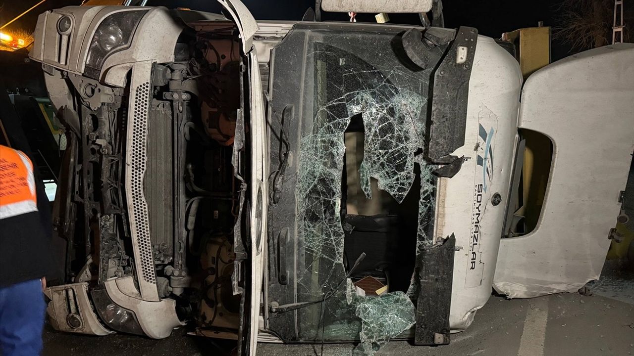 Kemerburgaz Cendere Yolu mevkisinde Emre T'nin kullandığı 34 GEF 48 plakalı mıcır yüklü hafriyat kamyonu, henüz belirlenemeyen nedenle kontrolden çıkarak karşı şeride devrildi. Sürücü yaralanırken, mıcırlar yola döküldü.