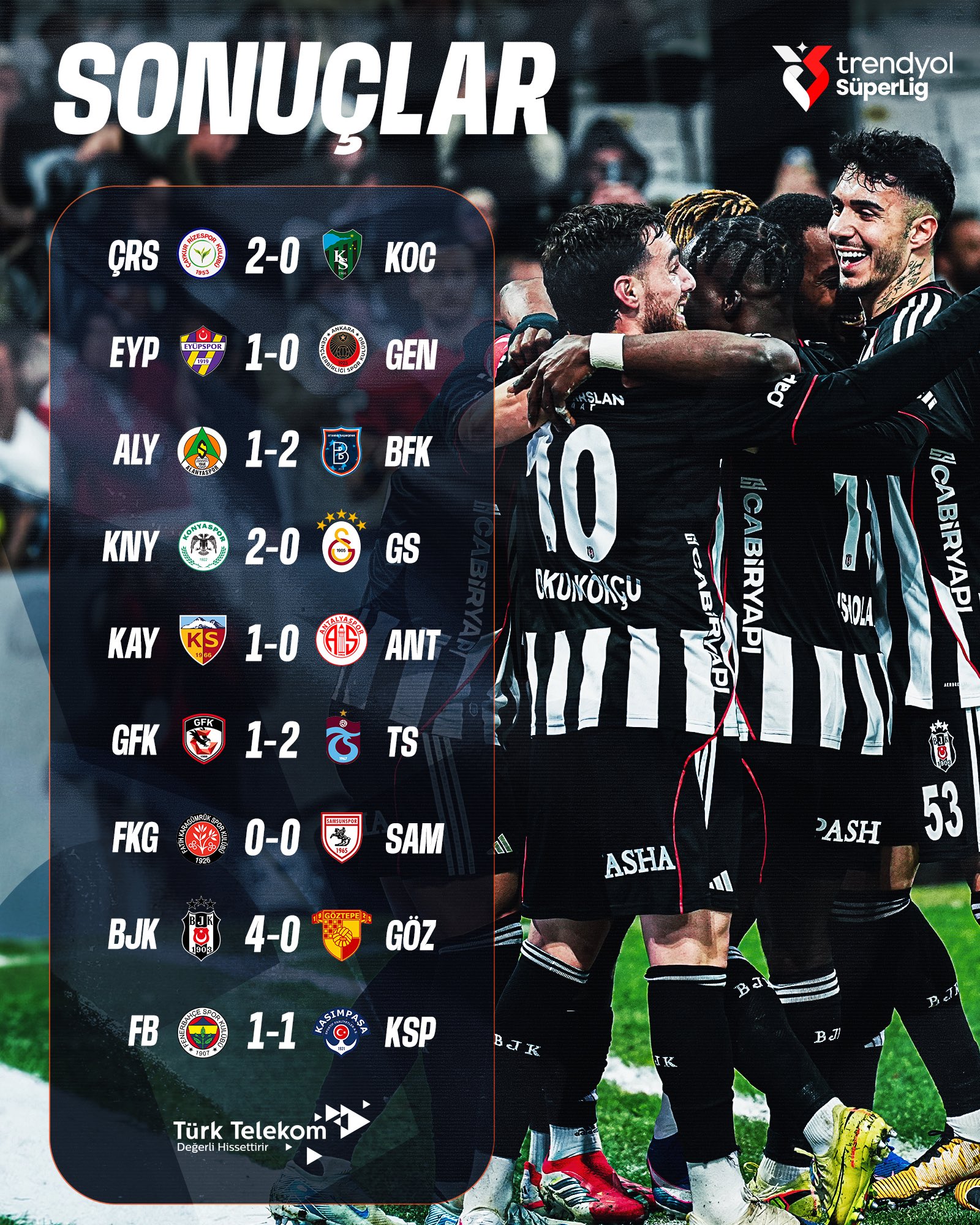 Lig’in 23. haftasında alınan sonuçlar ve bu sonuçlardan sonra oluşan puan tablosu şu şekilde oluştu