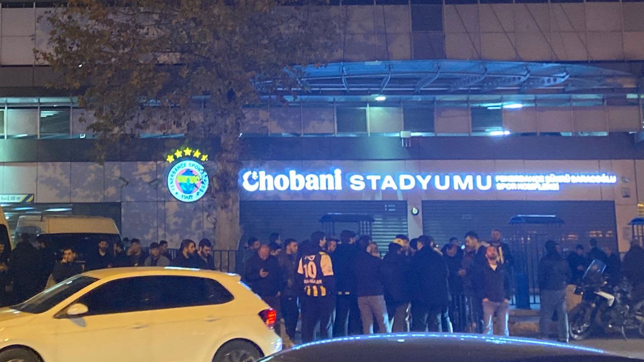 Sadettin Saran'ın gözaltına alınmasının ardından Sarı Lacivertli taraftarlar, başkanlarını yalnız bırakmamak için Chobani Stadı'nın önünden toplanmaya başladı