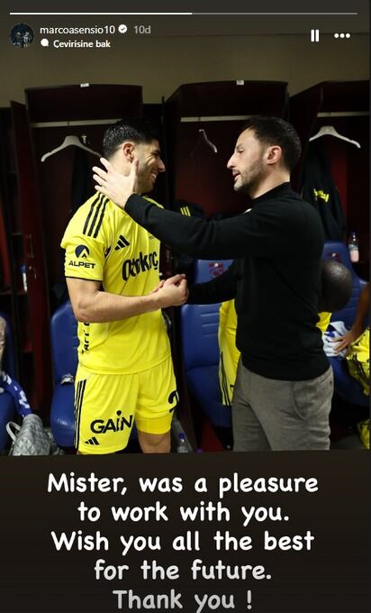 Marco Asensio'da Domenico Tedesco’ya veda etti; "Mister, sizinle çalışmak bir zevkti. Gelecekte size en iyi dileklerimi sunarım. Teşekkür ederim!" ifadelerini kullandı.