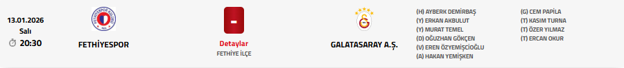 Ziraat Türkiye Kupası A grubu mücadelesinde Fethiyespor ile Galatasaray bu akşam 20.30'da Fethiye İlçe Stadı'nda karşılaşacak. Ayberk Demirbaş'ın yöneteceği maçta VAR hakeminin Eren Özyemişçioğlu olduğu açıklandı. AVAR koltuğunda ise Hakan Yemişken oturacak.