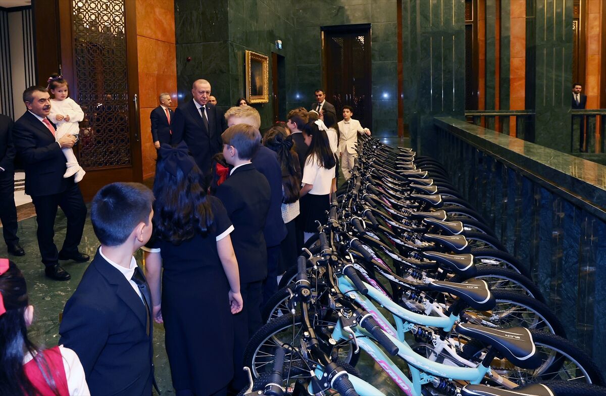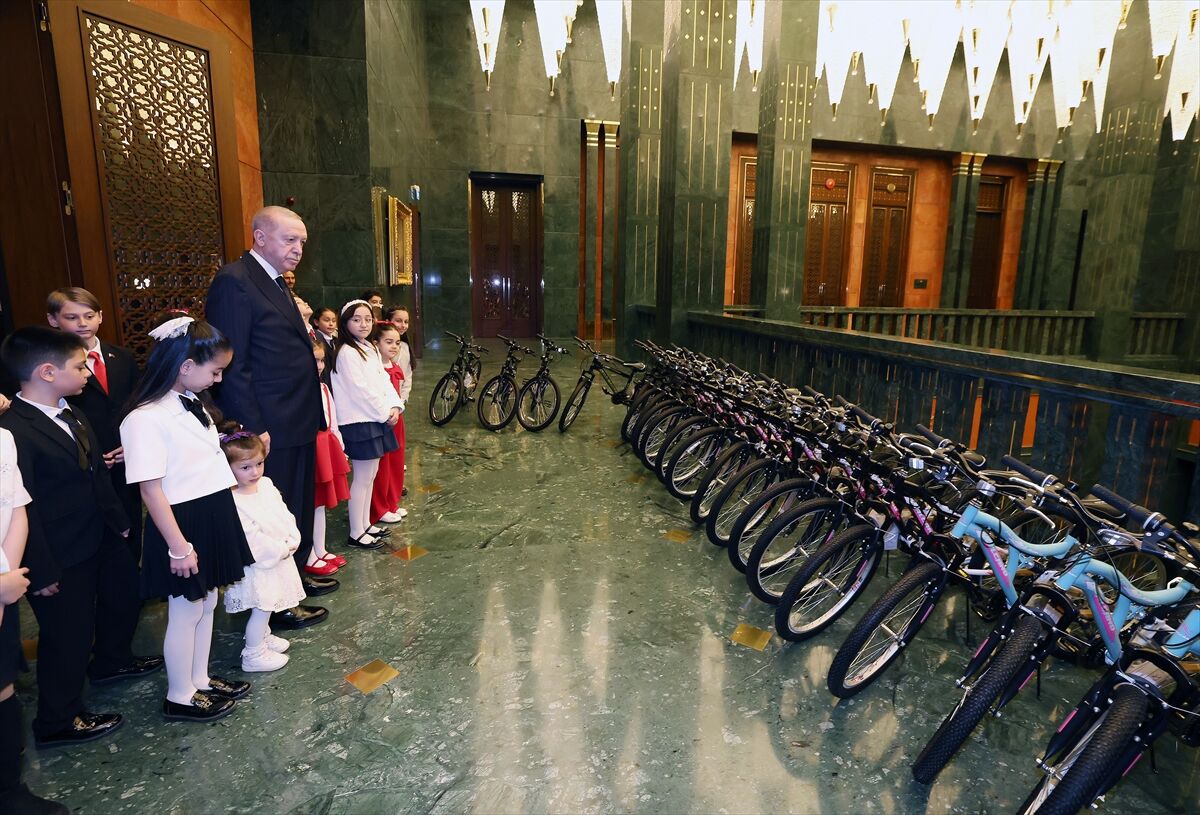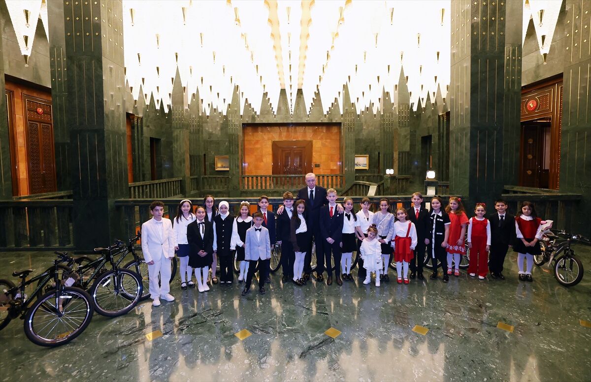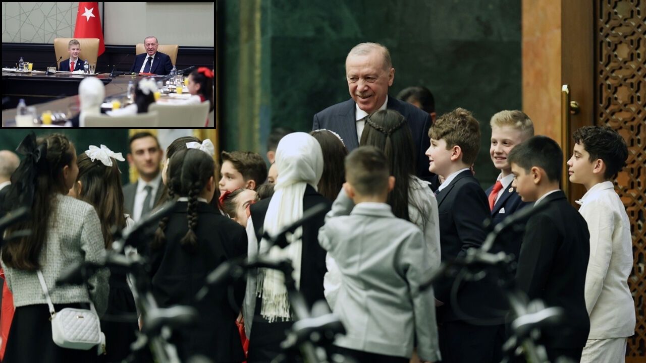 Cumhurbaşkanı Recep Tayyip Erdoğan, 23 Nisan Ulusal Egemenlik ve Çocuk Bayramı ile TBMM’nin 106. yıl dönümünde, Cumhurbaşkanlığı Külliyesi’nde Milli Eğitim Bakanı Yusuf Tekin ve beraberindeki çocukları kabul etti.