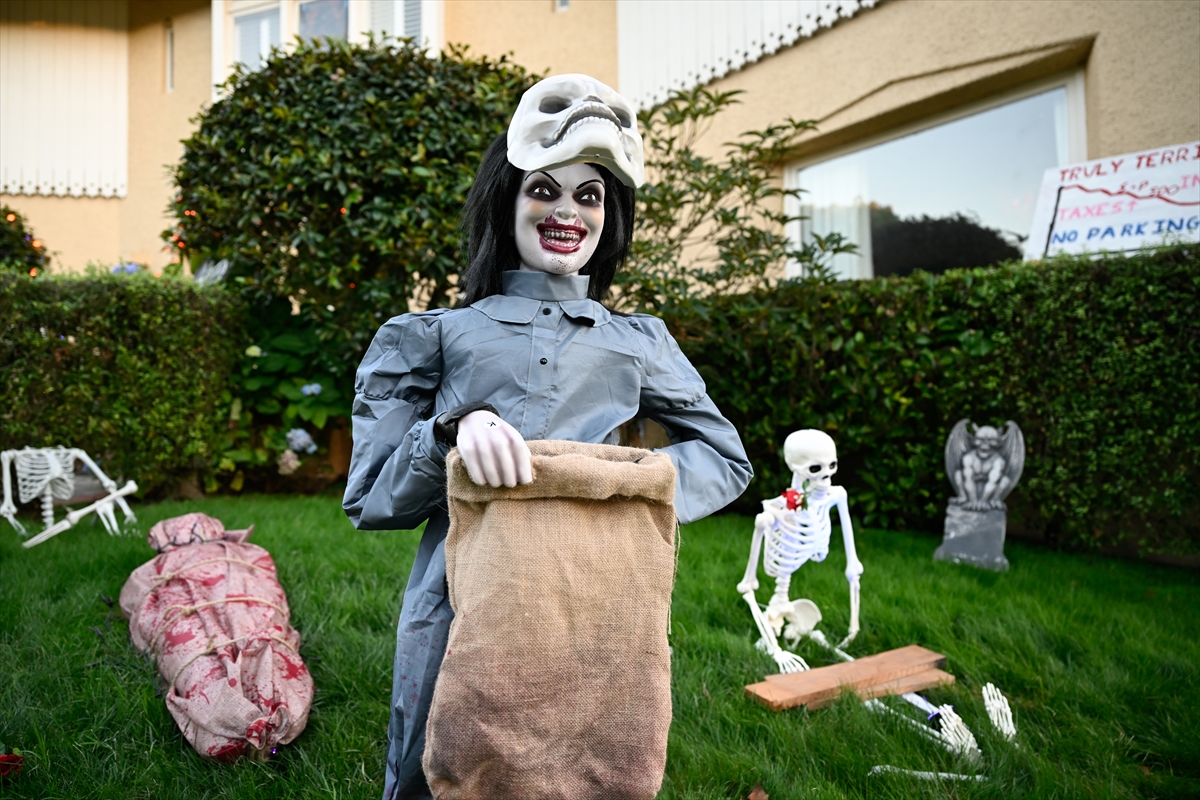 ABD’nin California eyaletine bağlı San Francisco kentinde Cadılar Bayramı (Halloween) öncesinde vatandaşlar ev ve bahçelerini iskelet, balkabağı ve örümcek ağı gibi dekoratif süslerle donattı. Şehir, renkli ve korkutucu temalarla dolu evlerle festival havasına büründü.
