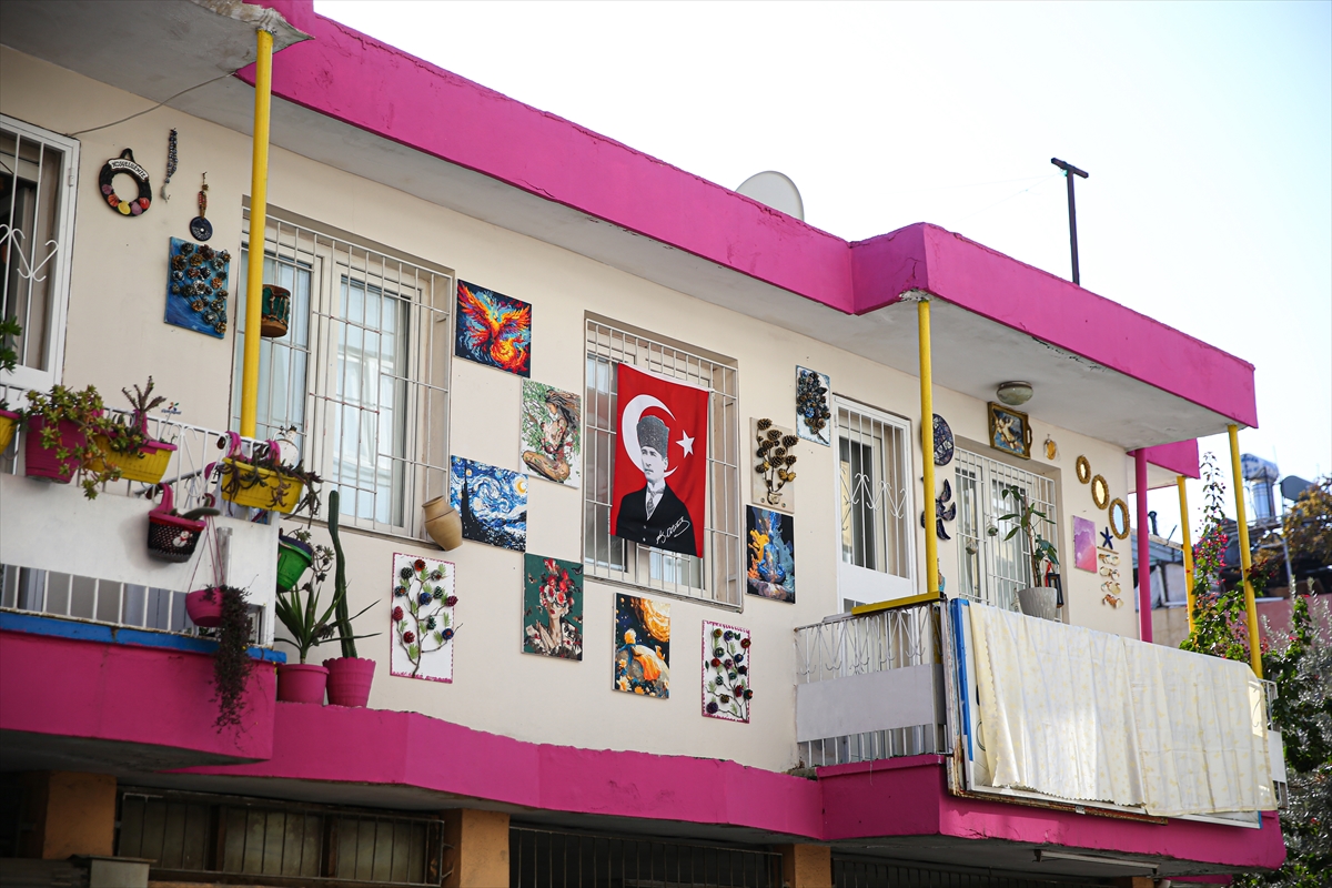 İlk etapta ailesinin desteğiyle evlerinin dış cephesini beyaz ve pembeye boyatan Çadırcı, daha sonra çevrelerindeki atık malzemeleri topladı.