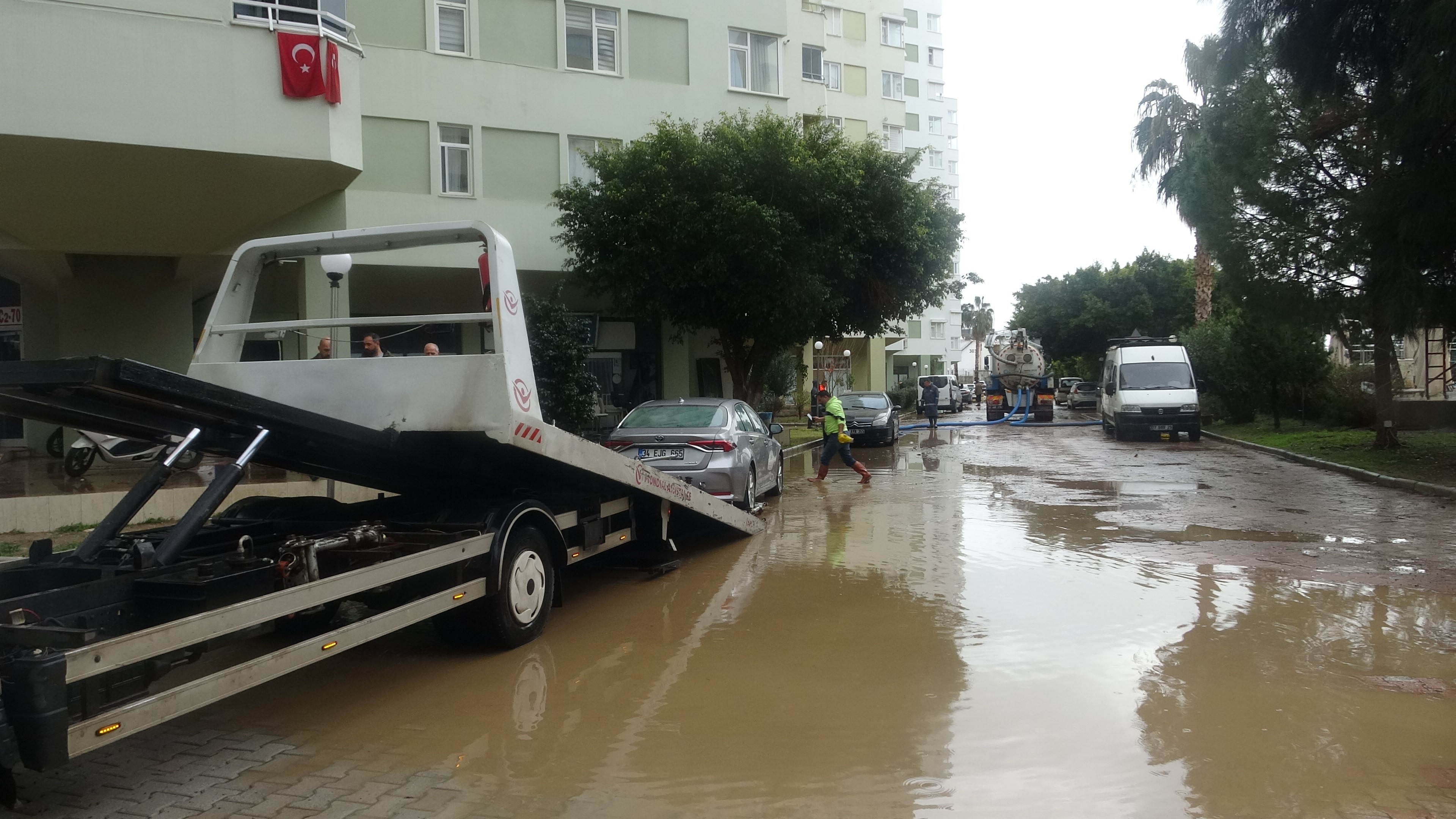 ASAT ve itfaiye ekipleri ağzına kadar su ile dolu otoparklarda bulunan suyu çekmek için dalgıç pompalar ise çalışma başlattı. Aracı ikamet ettiği sitenin otoparkında sular içinde kalan vatandaşlardan Leyla Görpe, "Dün akşamdan bu yana burada büyük bir afet yaşadık. Otoparklarımız su içinde, bizim sitemizde 2 araç yan sitede ise 9 araç sular içinde. Elektriğimiz olmadığı için hidraforlarımız dahi çalışmıyor. Mahsur kalmış durumdayız. Siteleri boşalttırıyoruz. Bu suların çekilmesi ve elektriğin yeniden sağlanması için 1 hafta lazım. AFAD'ı, itfaiyeyi aradık. Jeneratör getirdiler, ama elektrik olmadığı için suyu da boşaltamıyoruz. Dalgıç motorlarımızın olması da hiçbir işe yaramadı elektriğimiz olmadığı için. Burada mahsur durumdayız, ya otellere gideceğiz, ya da akrabalarımız varsa onlara gideceğiz" dedi.