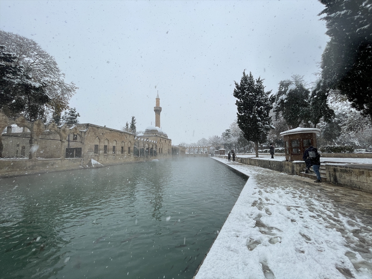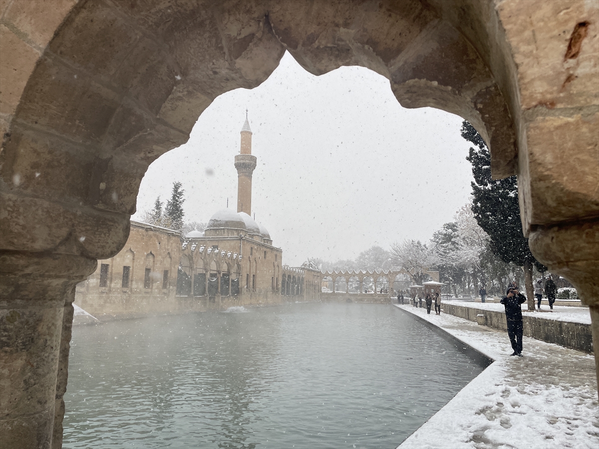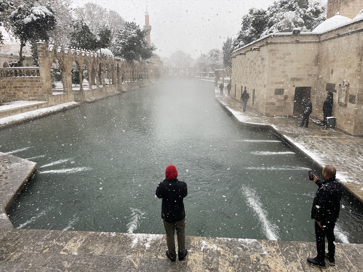 Şanlıurfa'da etkili olan kar, Balıklıgöl ve Şanlıurfa Kalesi'nde kartpostallık görüntüler oluşturdu.