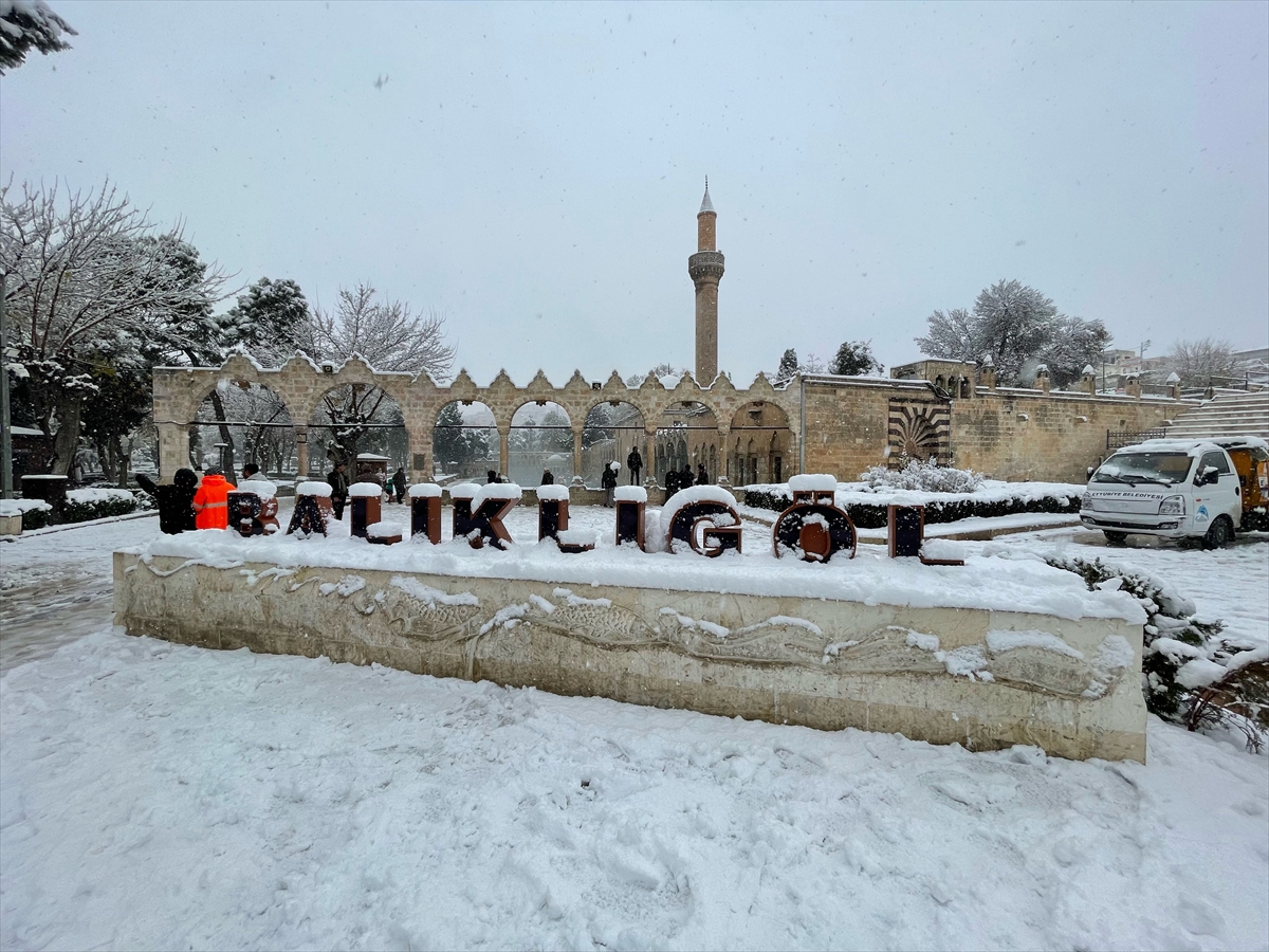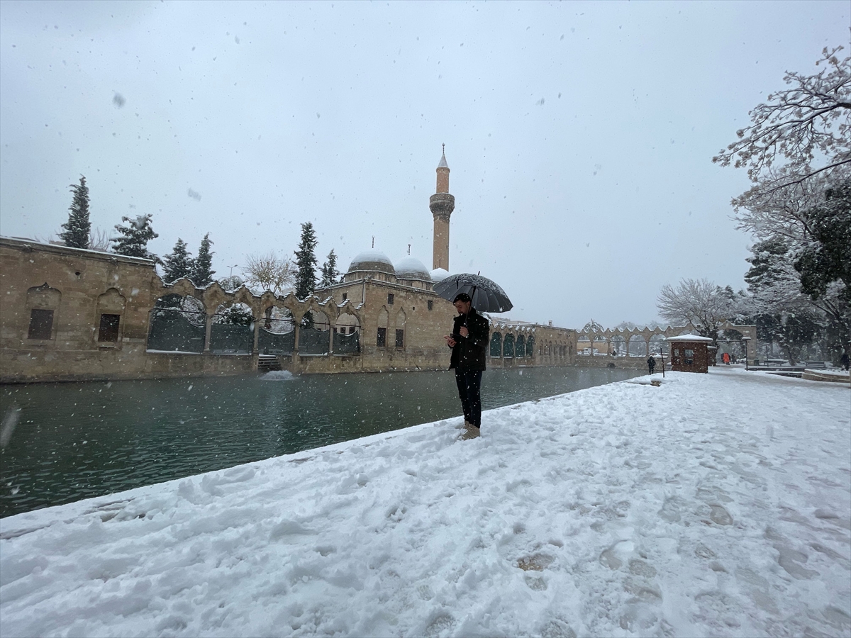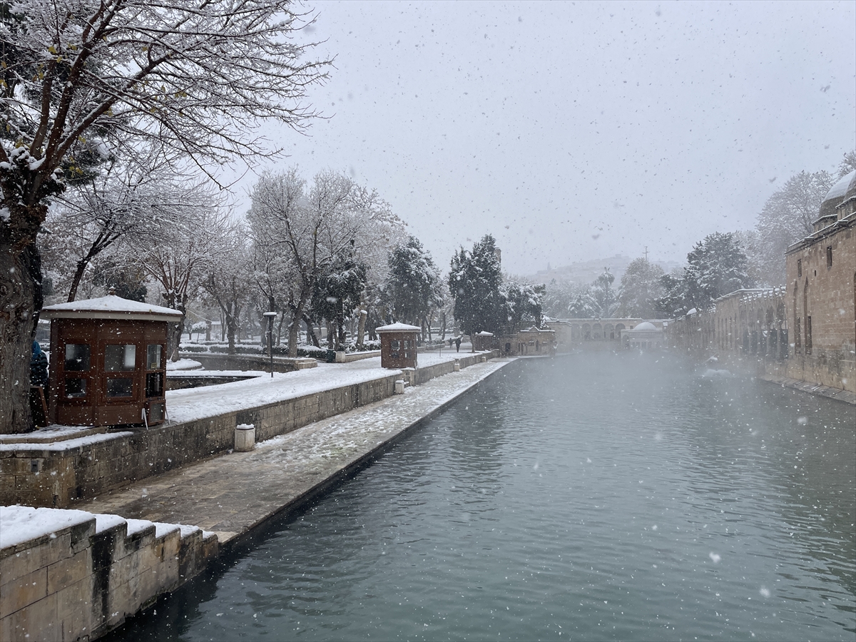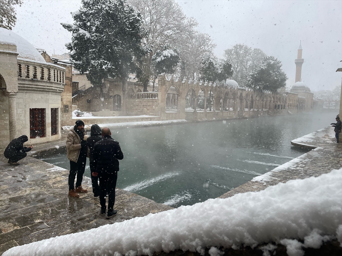 Şanlıurfa'da etkili olan kar, Balıklıgöl ve Şanlıurfa Kalesi'nde kartpostallık görüntüler oluşturdu.