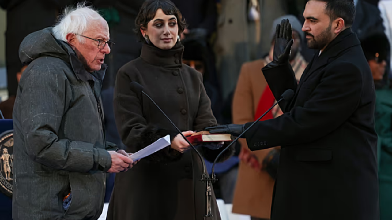New York'un ilk Müslüman belediye başkanı 34 yaşındaki Zohran Mamdani, ABD'li senatör Bernie Sanders'ın uzattığı Kuran-ı Kerim üstüne yemin ederek görevine başladı. ABD siyasetinin çok konuşulan isimlerinden olan Sanders ikonikleşen pozunun bir benzerini Mamdani'nin yemin töreninde de verdi. O görüntüler sosyal medyada gündem oldu.
