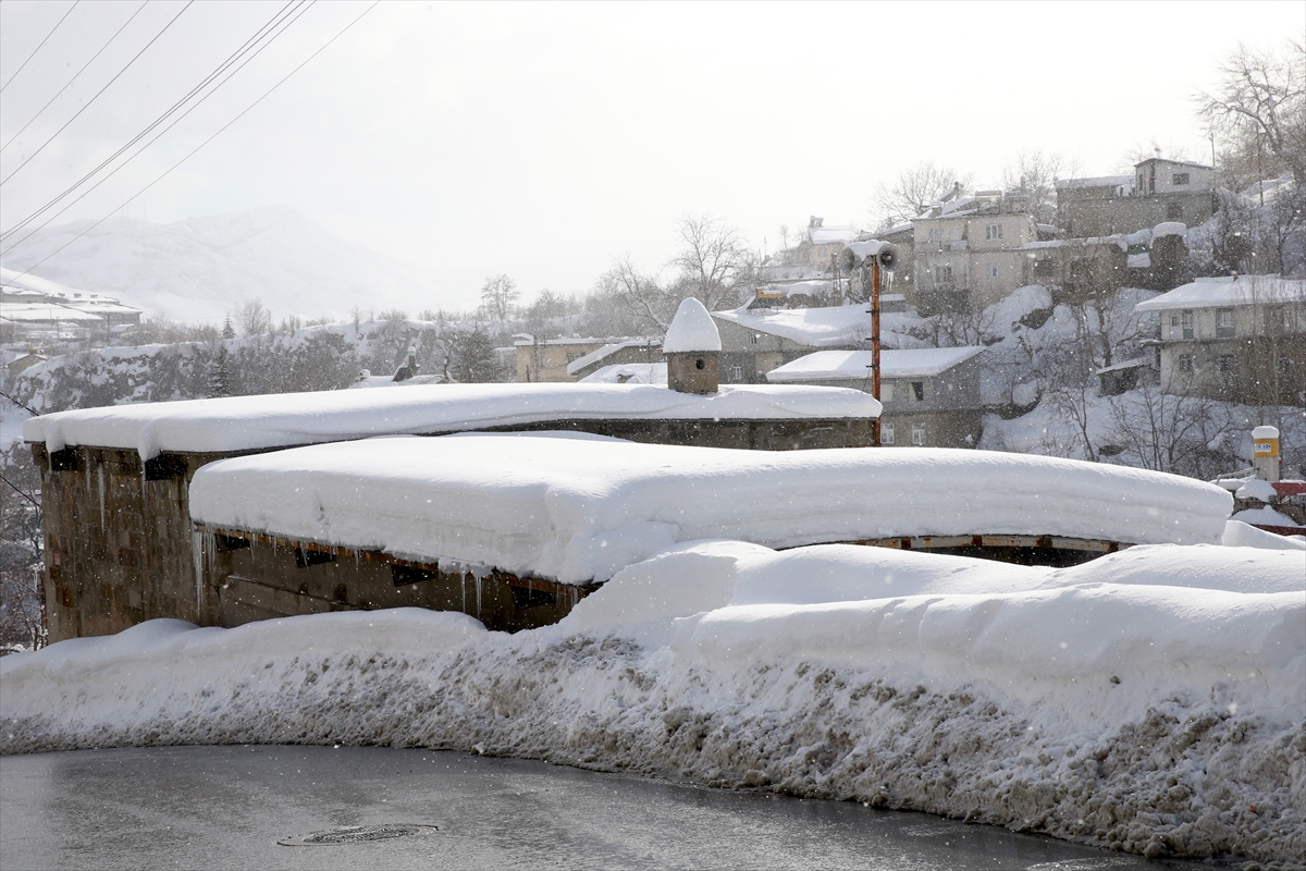 BİTLİS'TE TEK KATLI EVLER KARLA KAPLANDI