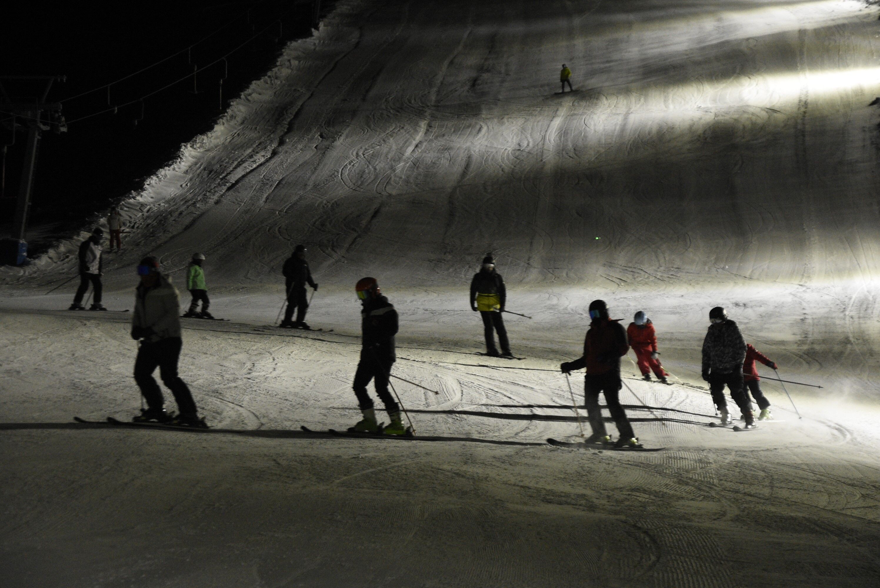Dün akşam ilk kez gerçekleştirilen uygulamada, gece kayağı için hem tesisin hem de pistlerde kurulan ışıklandırma sisteminin denemesi yapıldı.