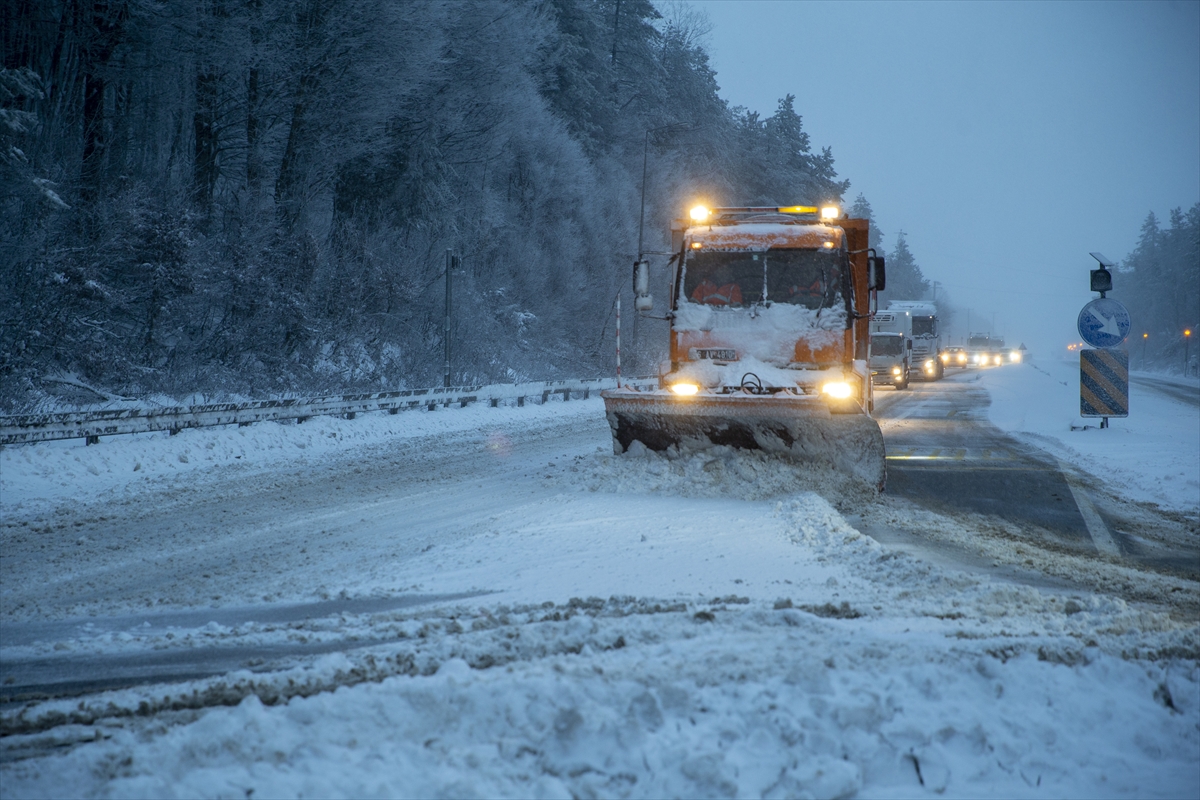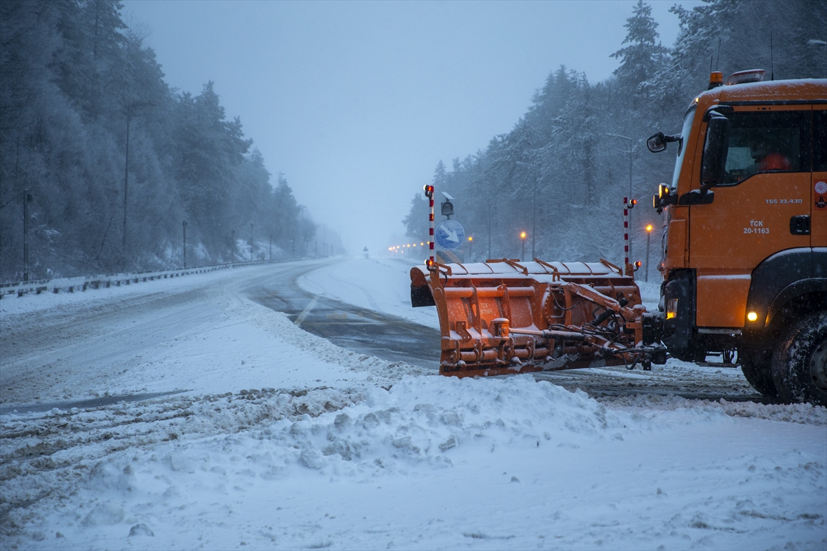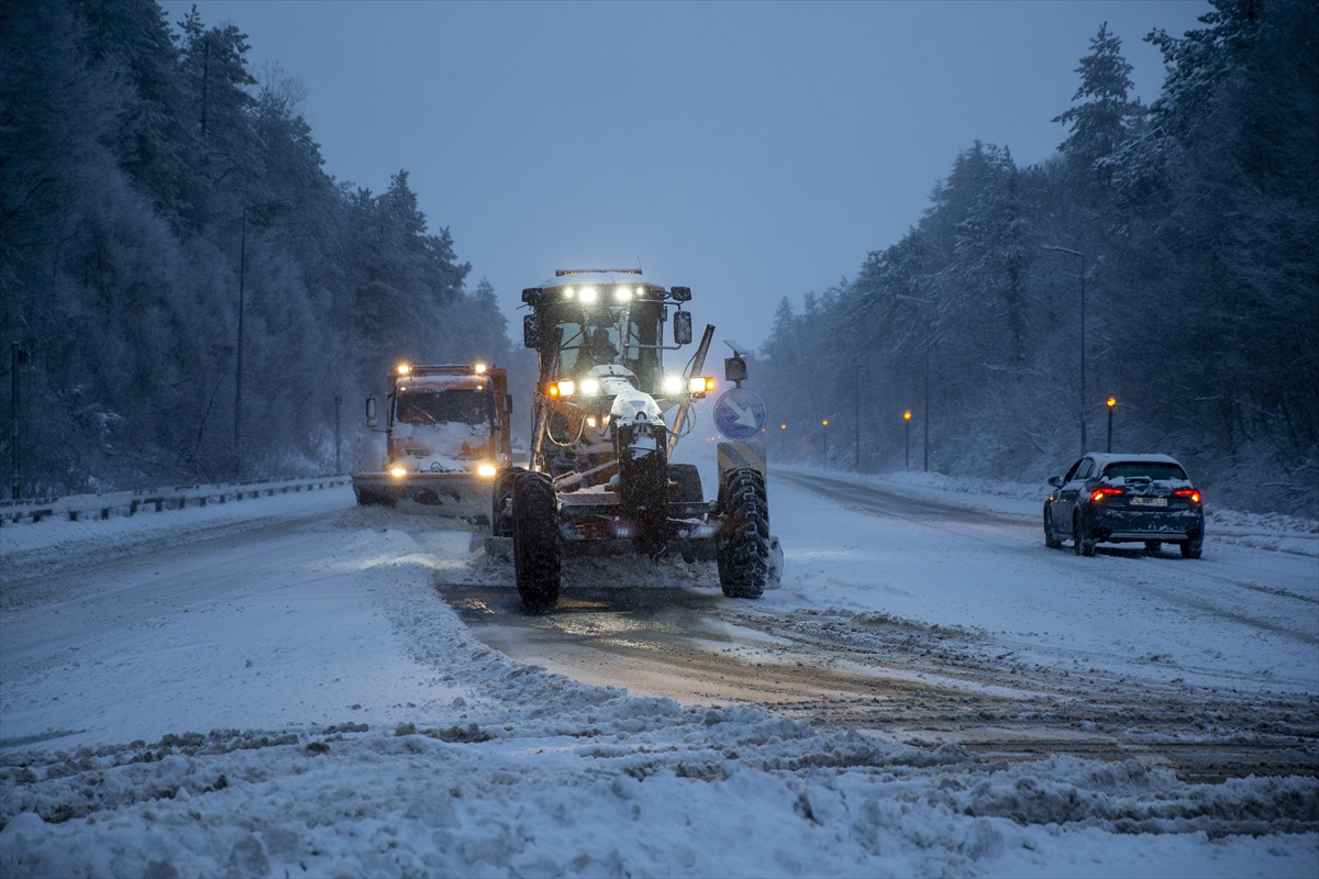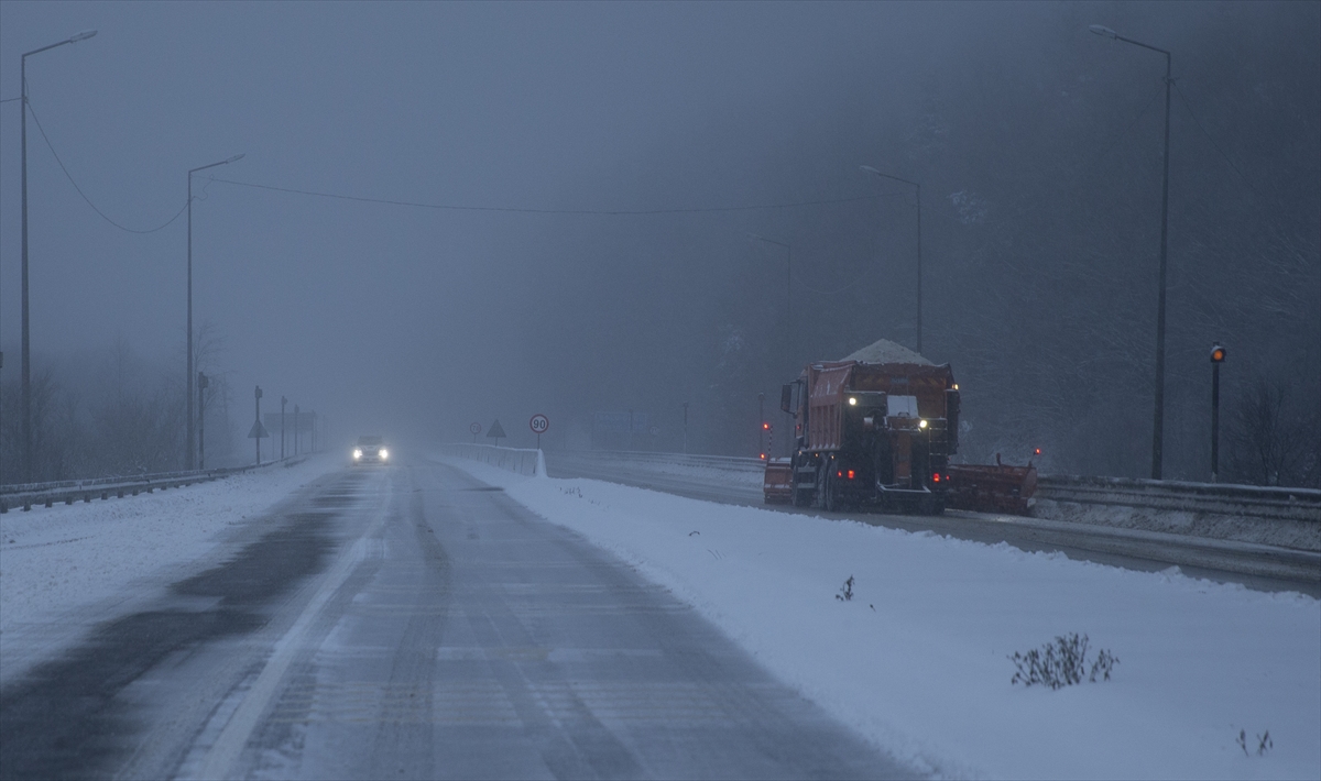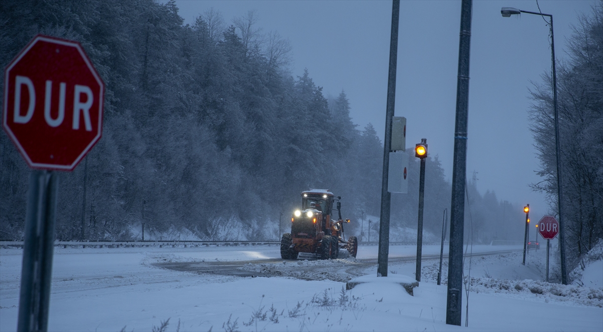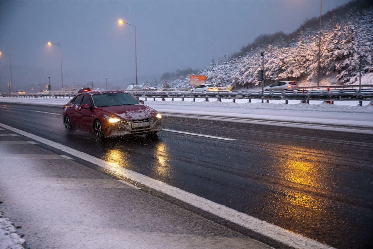 Kar kalınlığının yaklaşık 10 santimetre olduğu güzergahta jandarma ve trafik ekipleri, sürücüleri kış lastiği olmadan yola çıkmamaları konusunda uyarıyor.