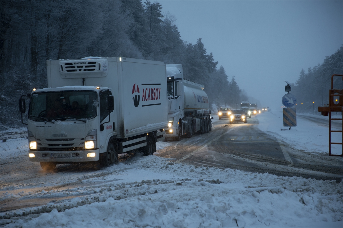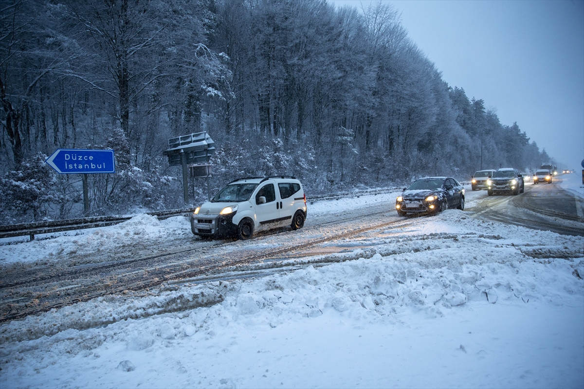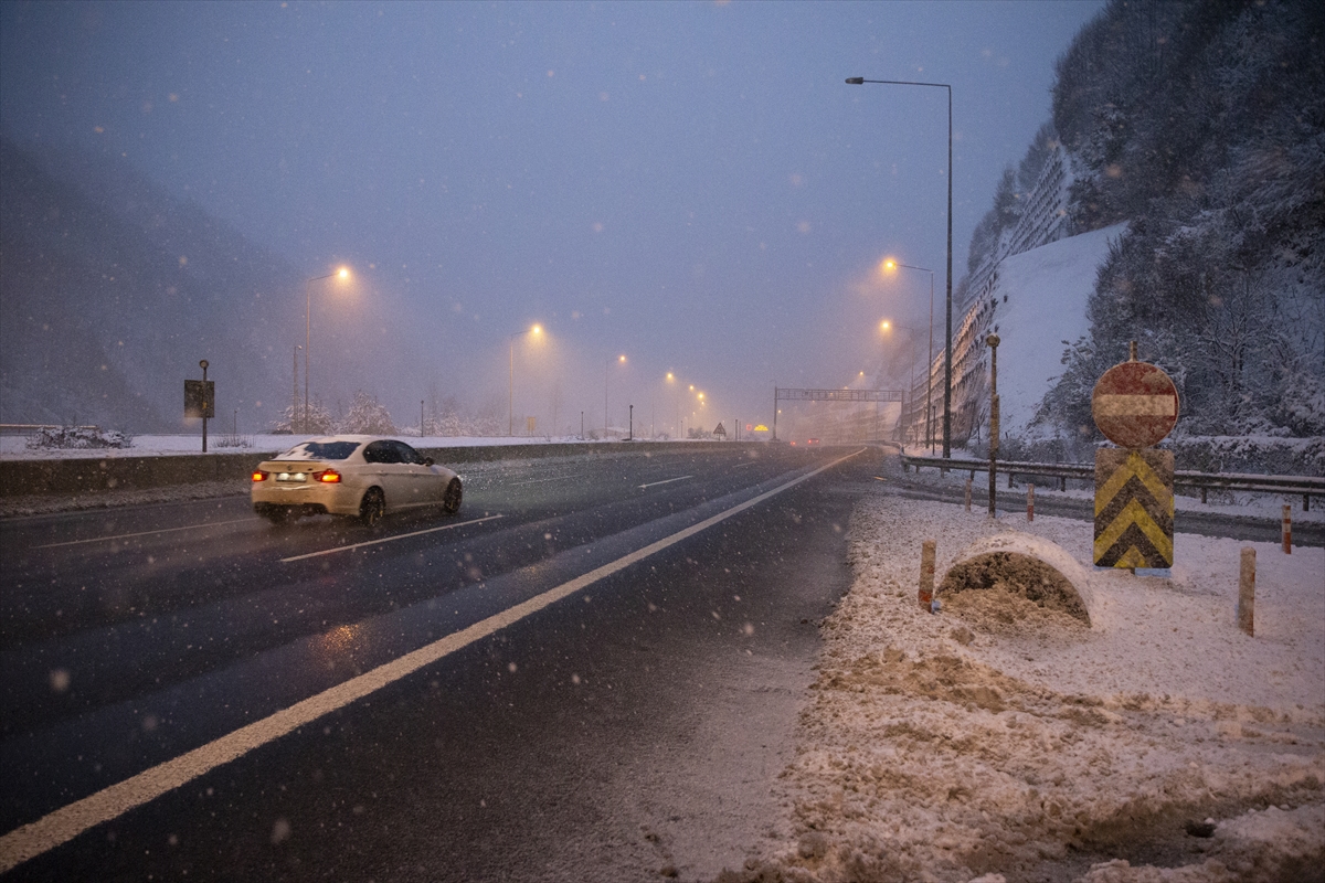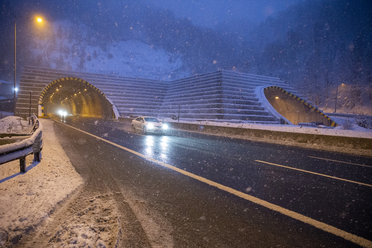 Otoyolun Yumrukaya, Abant Kavşağı, Bolu Dağı Tüneli ve viyadükler kesiminde de kar yağışı görülüyor.