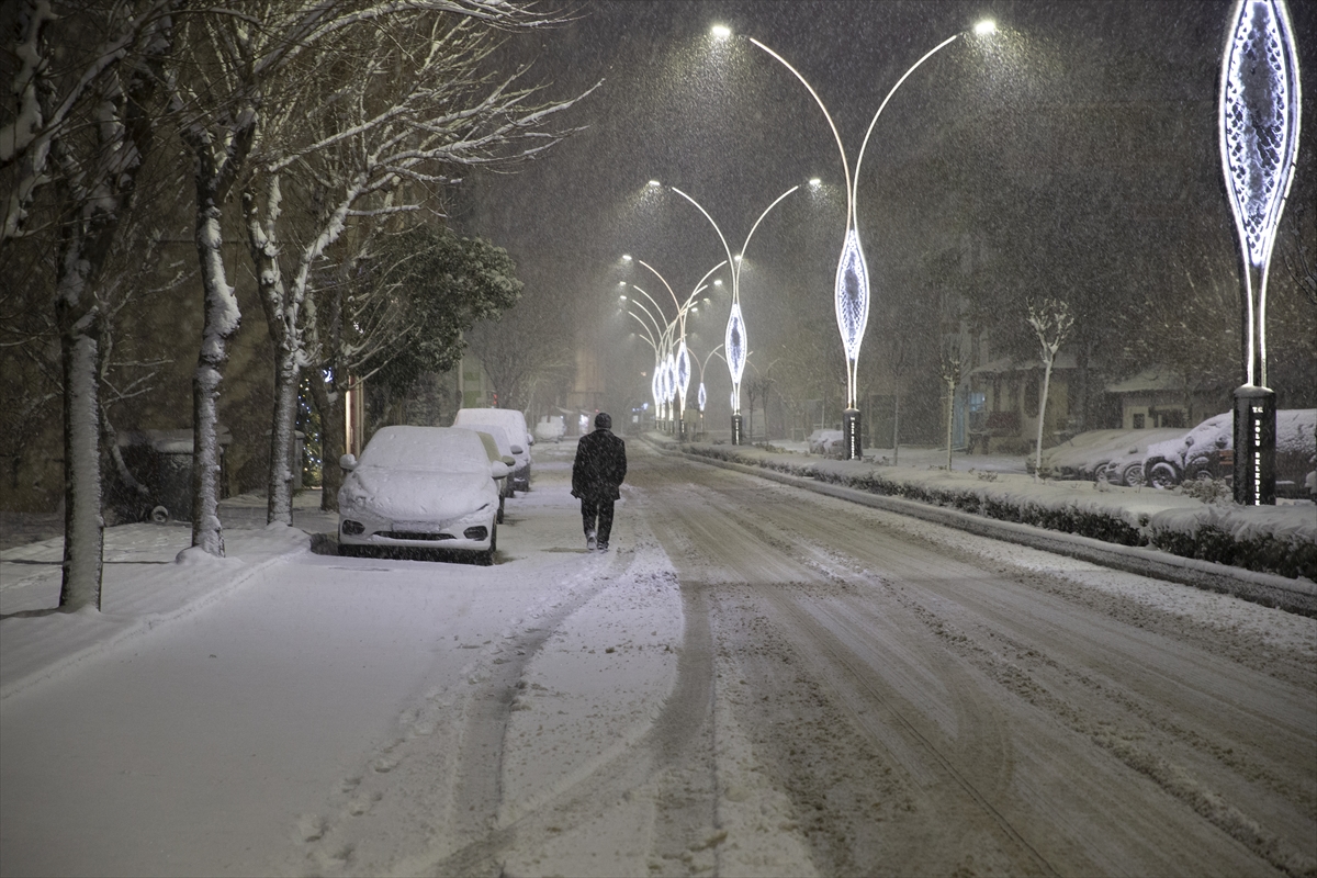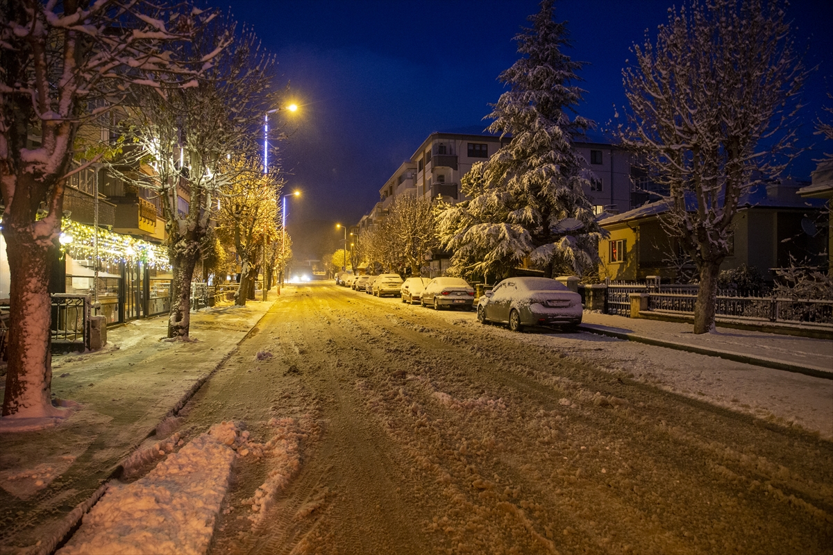 Kent merkezinde gece saatlerinde başlayan yağış nedeniyle cadde ve sokaklar karla kaplandı.