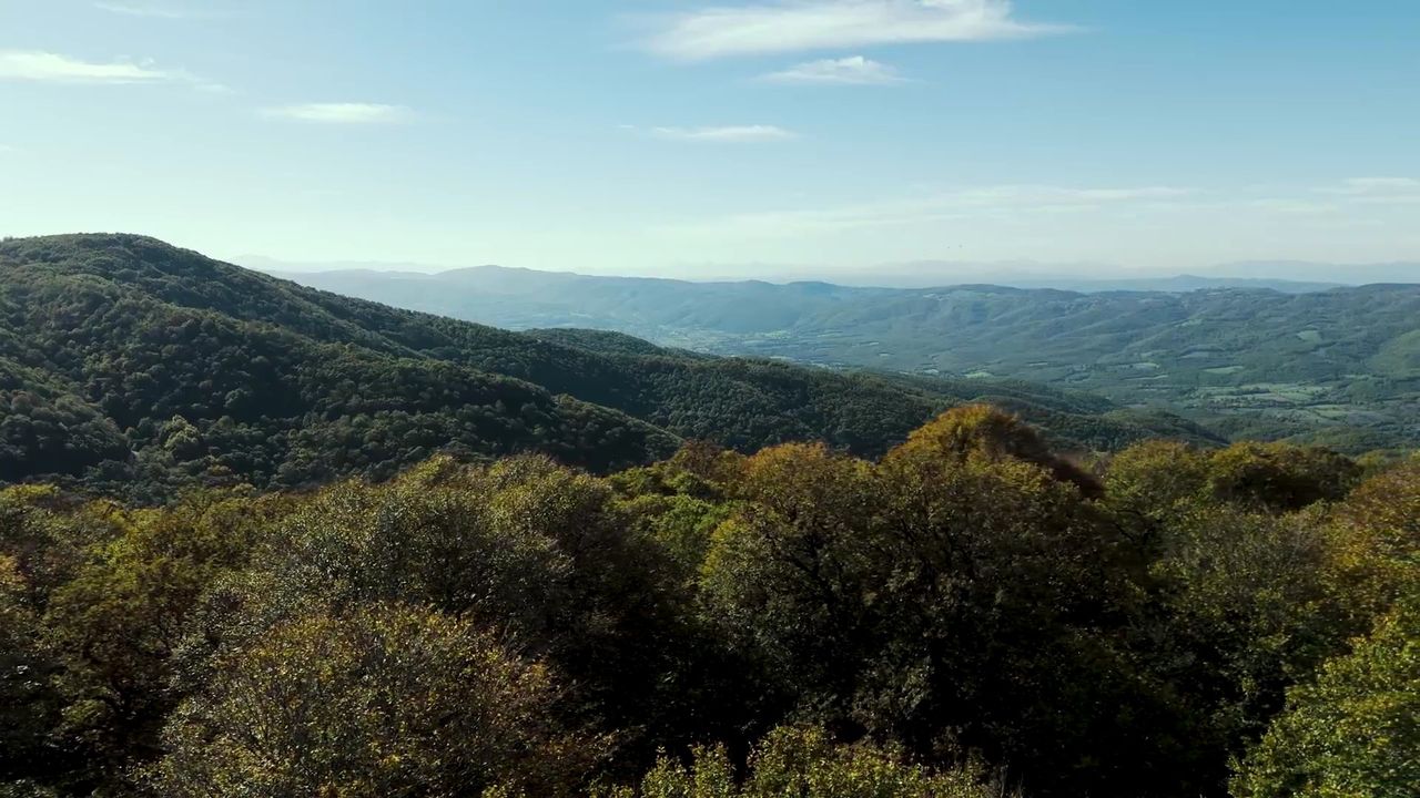 Biga'da ağaçlar, sarı ve yeşilin tonlarına bürünerek gözalıcı bir orman manzarası oluşturuyor. Seyrine tatmin olmayan manzara dron ile görüntülendi.